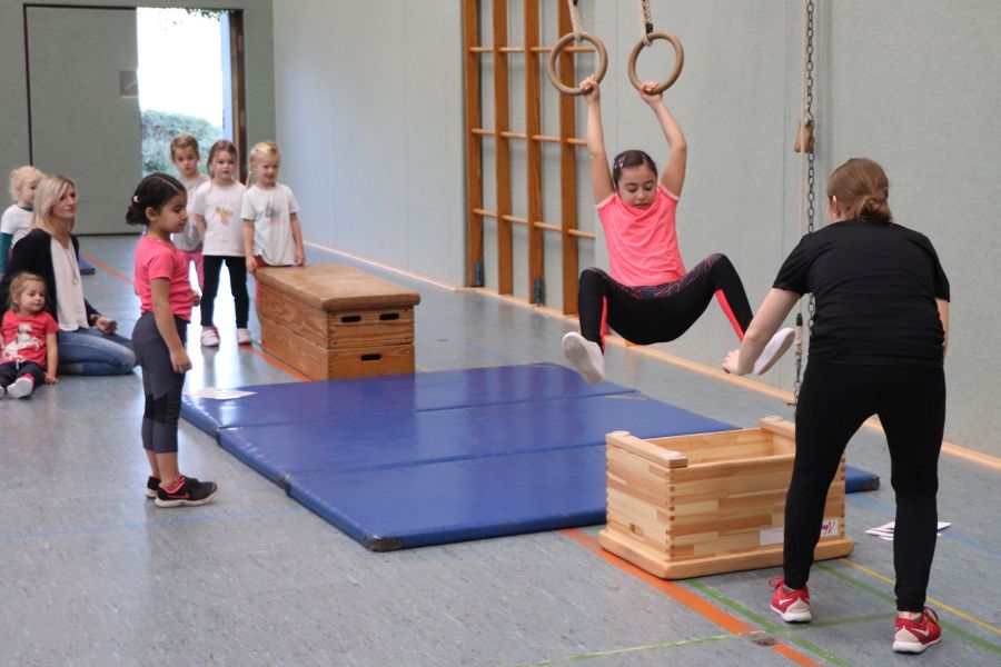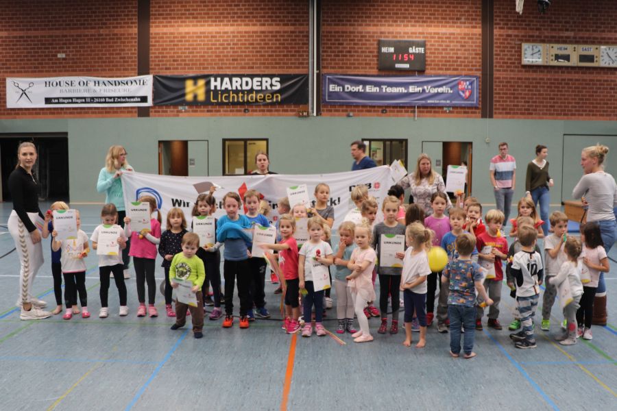 Dann geht es los, die Laufkarten werden verteilt und es geht von Station zu Station. Es wird gelacht, getobt und geturnt. Mit Eifer und Freude werden alle Übungen absolviert und am Ende gibt es die ersehnte Urkunde als Bestätigung der erbrachten Leistungen.