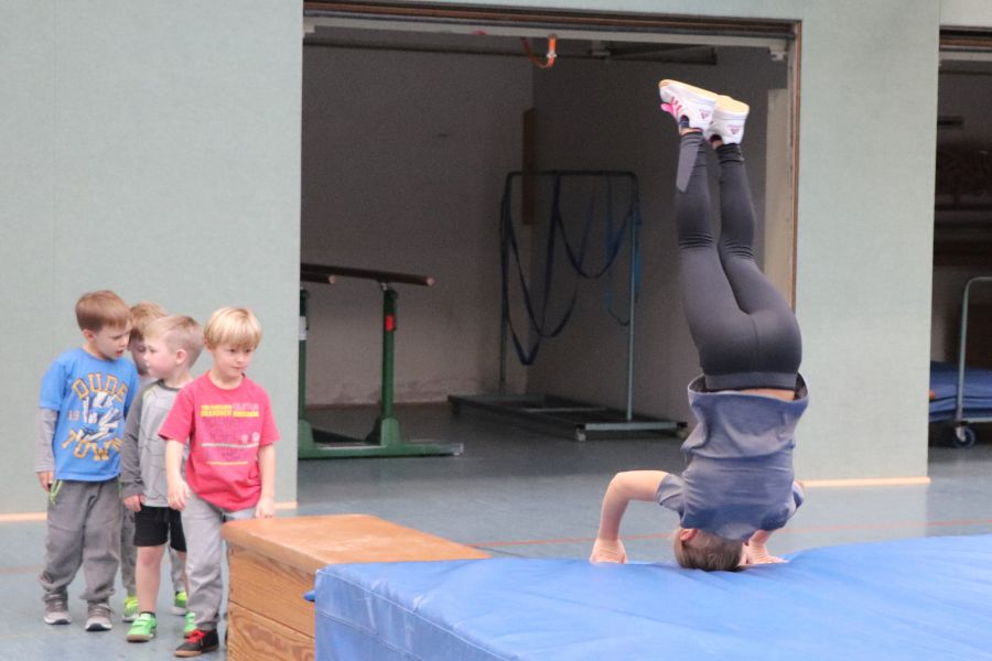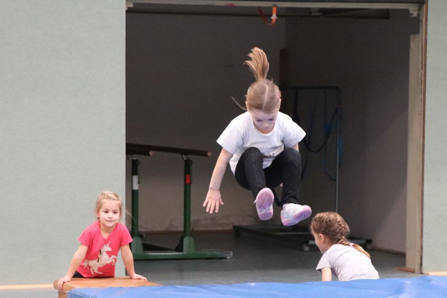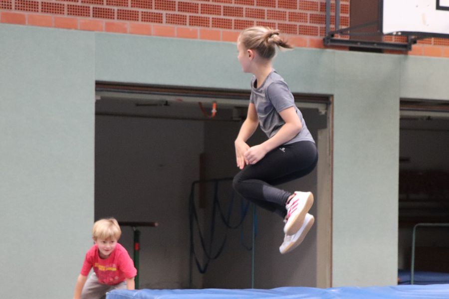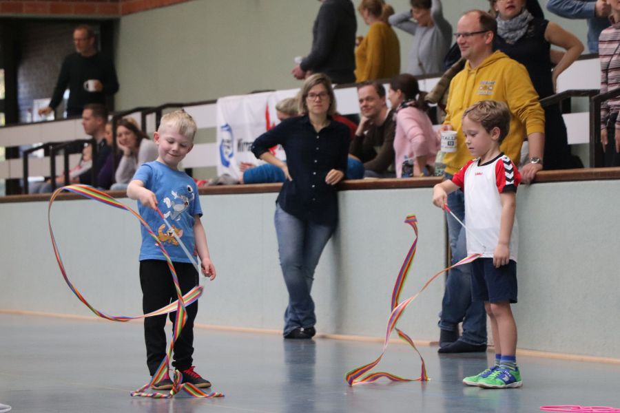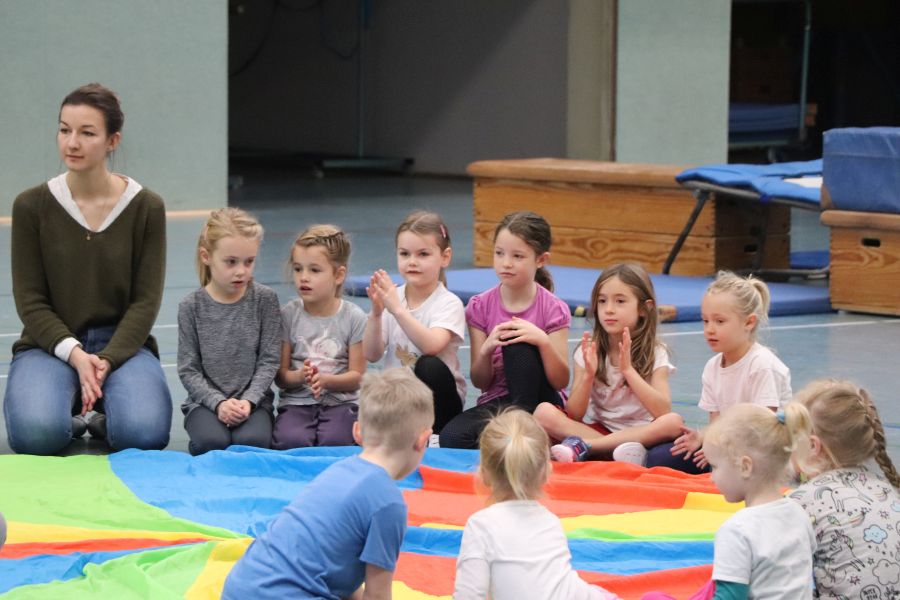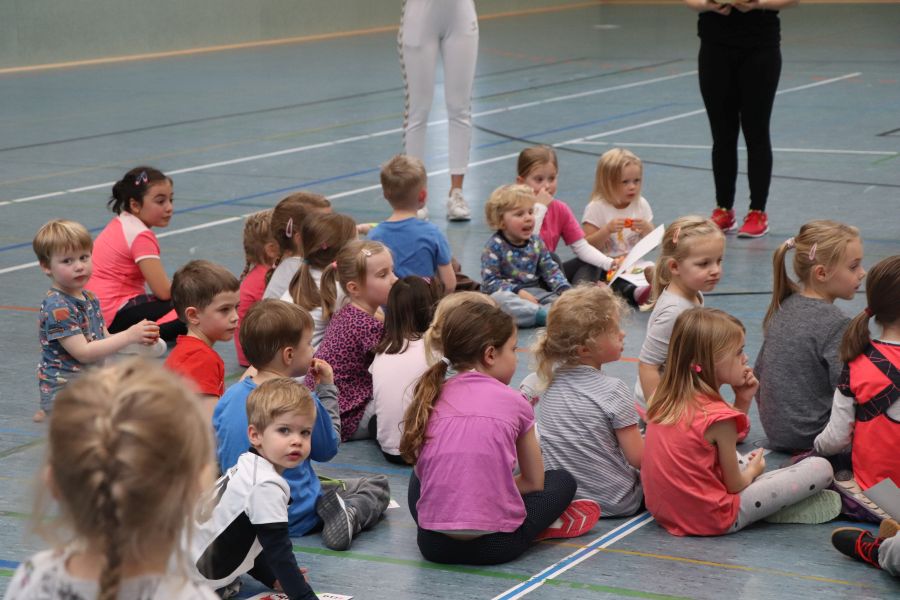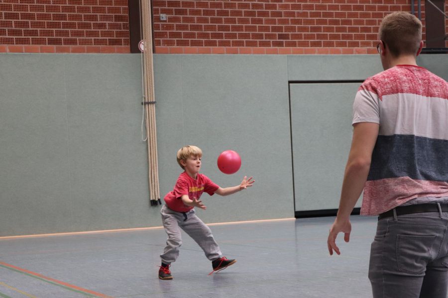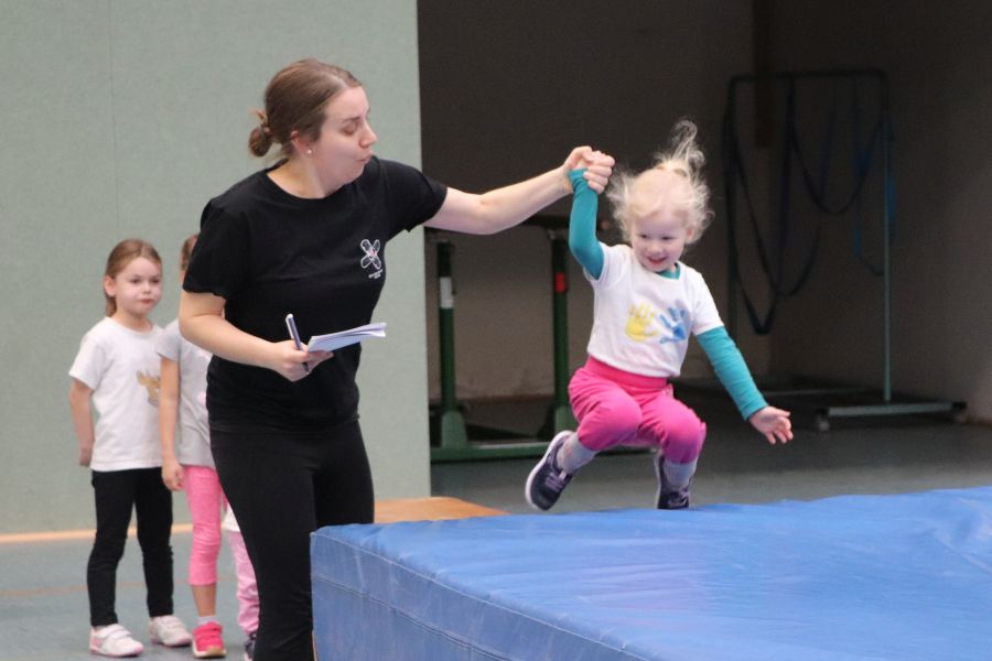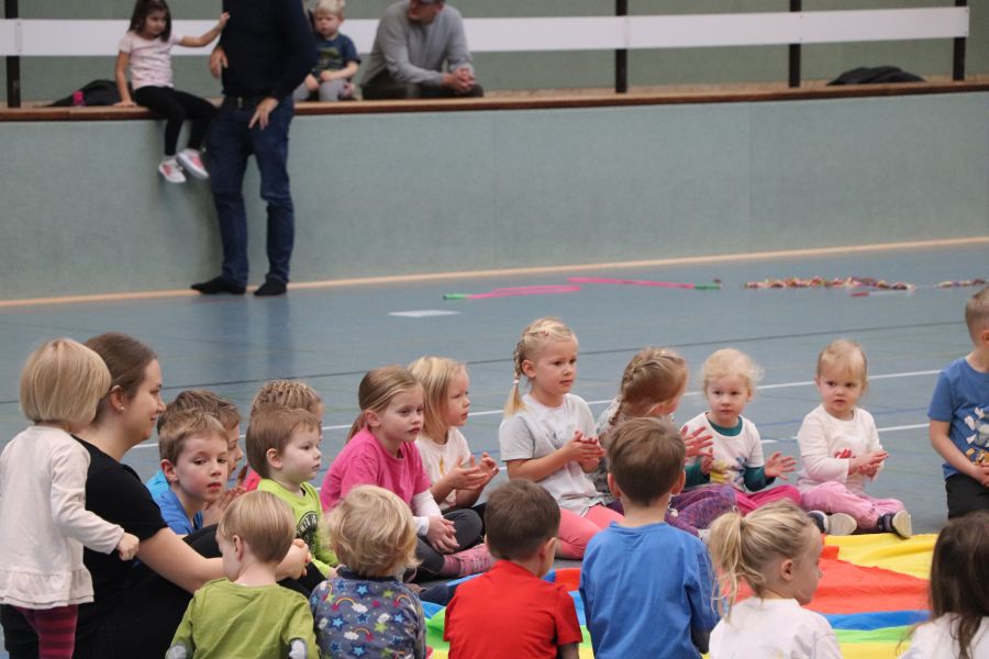 Morgens ab 8 Uhr treffen sich die Übungsleiterinnen vom Kinderturnen, angeworbene Helfer und Christina, unsere engagiere FSJlerin, in der Sporthalle. Es werden Stationen aufgebaut, Laufkarten und Urkunden bereitgelegt und weitere Vorbereitungen getroffen. Ab 9:30 Uhr füllt sich die Halle am Rudolf-Kinau-Weg mit erwartungsvollen Kindern und Eltern. Spannung liegt in der Luft, was erwartet die kleinen Sportler?