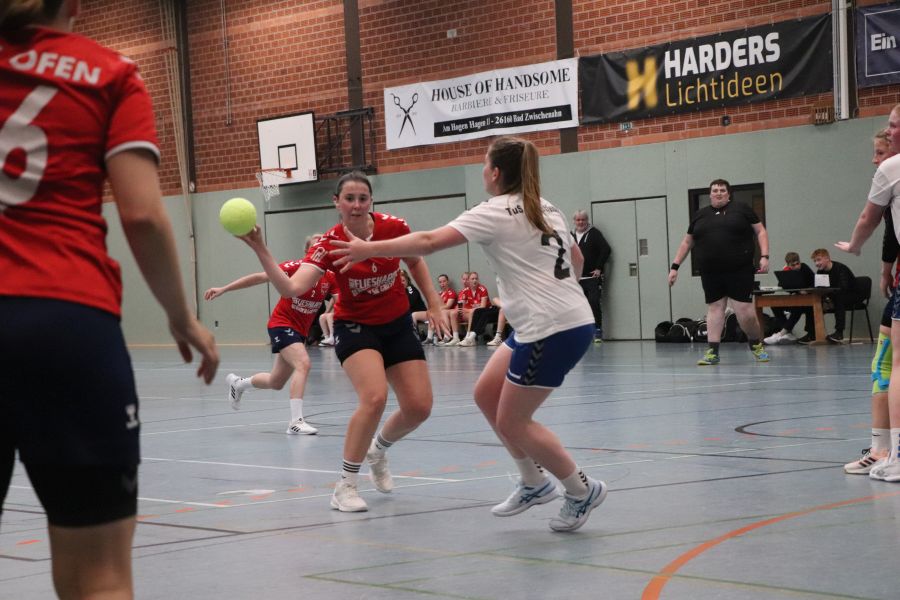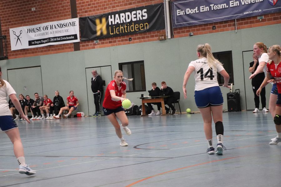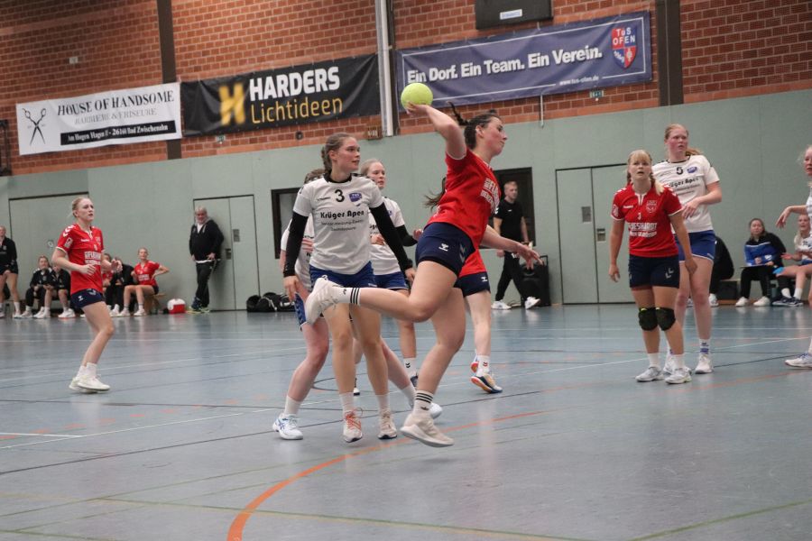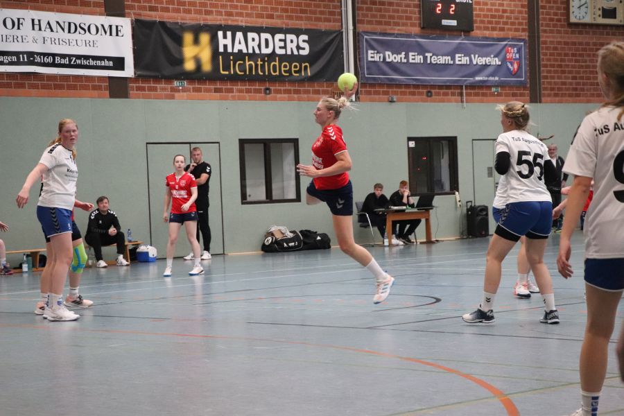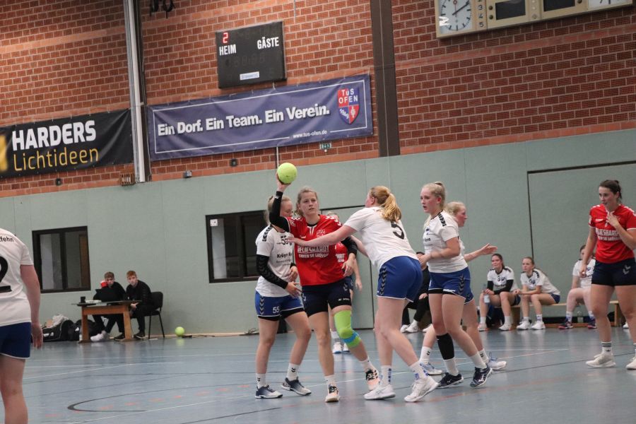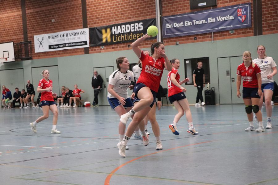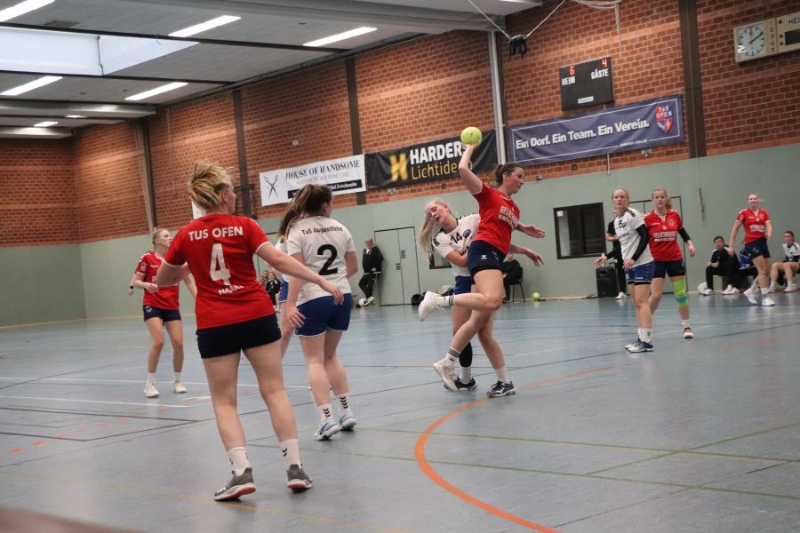 Die Handballerinnen des TuS Ofen haben heute Nachmittag in heimischer Halle gegen den TuS Augustfehn mit 37:19 (18:13) gewonnen. Die beste Torschützin war Ina Kluge mit 14 Torerfolgen. Auch die Verteidigung stand gut, nachdem sie in den Anfangsminuten noch etwas fahrig war.
