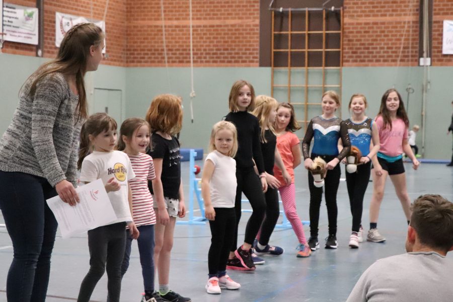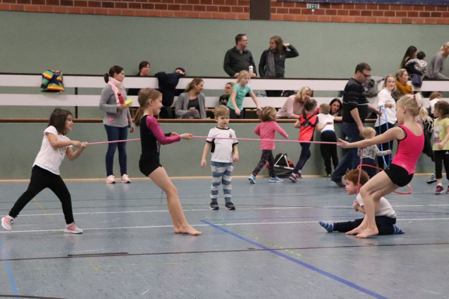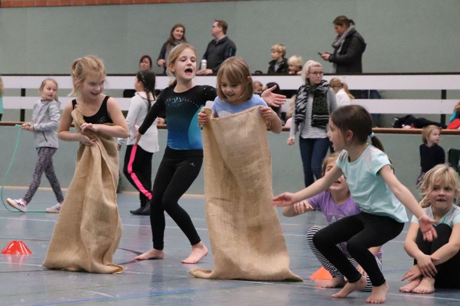 Nachdem zu Beginn des Jahres der Kinderkarneval beim TuS Ofen so gut ankam, beschlossen wir, auch eine Kinder Weihnachtsfeier zu organisieren. Unsere FSJlerin Christina, die sich ja auch schon beim Herbstlauf mit den Kinderaktionen eingebracht hatte, lief zu Höchstform auf. Gemeinsam mit den Übungsleiterinnen plante sie Stationen und Vorführungen der Gerätturn- und Tanzgruppen. Auch die seit August neu eingeführte Hobby-Horsing-Gruppe konnte das bisher Gelernte vor Publikum zeigen.
