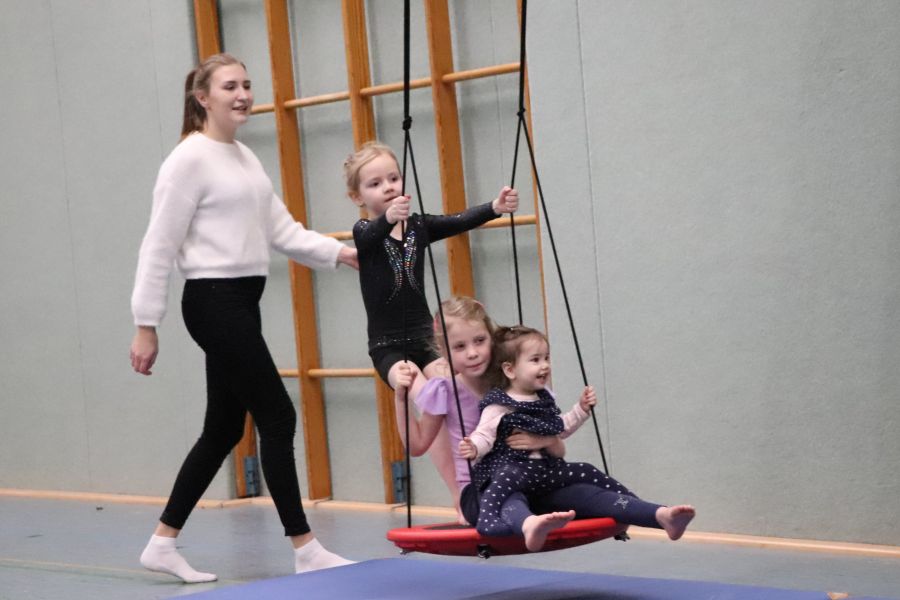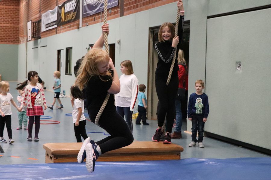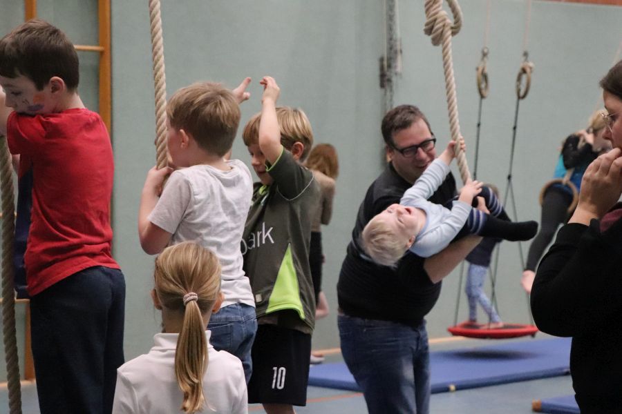 Bei dem großen Zulauf in der Halle waren auch die Eltern gefordert, bei den verschiedenen Übungen Hilfestellung zu geben. Bei Kaffee, Kinderpunsch, Keksen und Kuchen konnte zwischendurch aber auch eine Pause eingelegt werden.