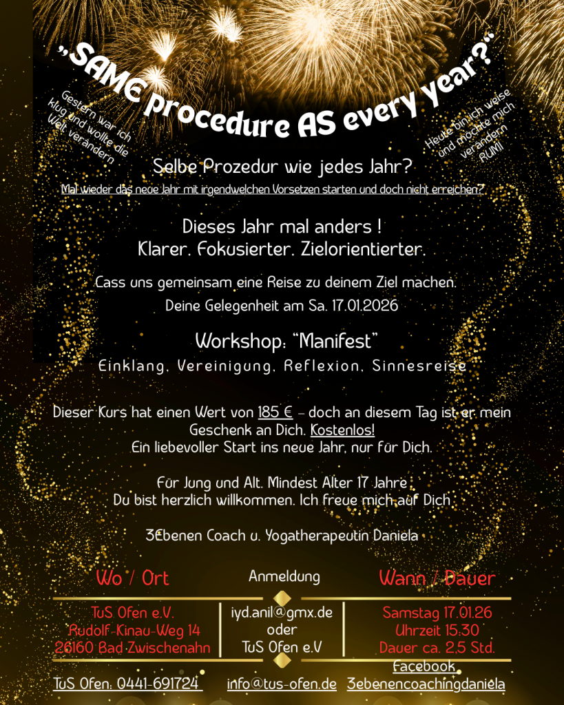 Am 17.01.2026 findet der Workshop „Manifest“ von 3Ebenen Coach & Yogatherapeutin Daniela bei uns statt.