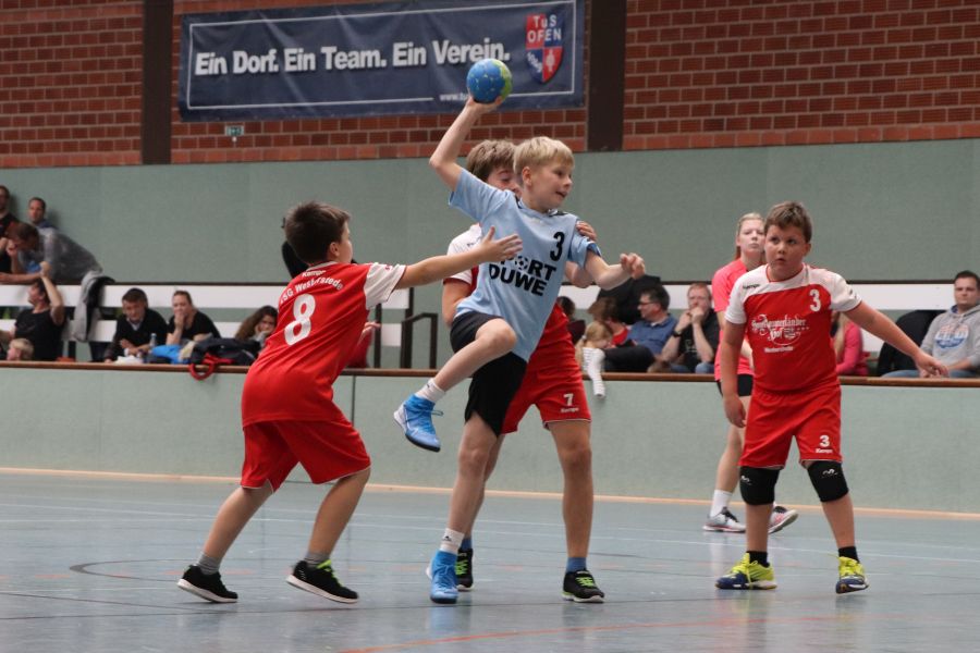 In heimischer Halle stand heute eine starke Ofener Mannschaft den Gegnern des VfL Rastede, TSG Westerstede, HTV Hundsmühlen und Elsflether TB gegenüber. Die Zuschauer bekamen spannende Spiele zu sehen. Trainer Pascal Hashagen konnte mit seinem Team mehr als zufrieden sein, musste man während des gesamten Turniertages doch nur 6 Gegentore einstecken.