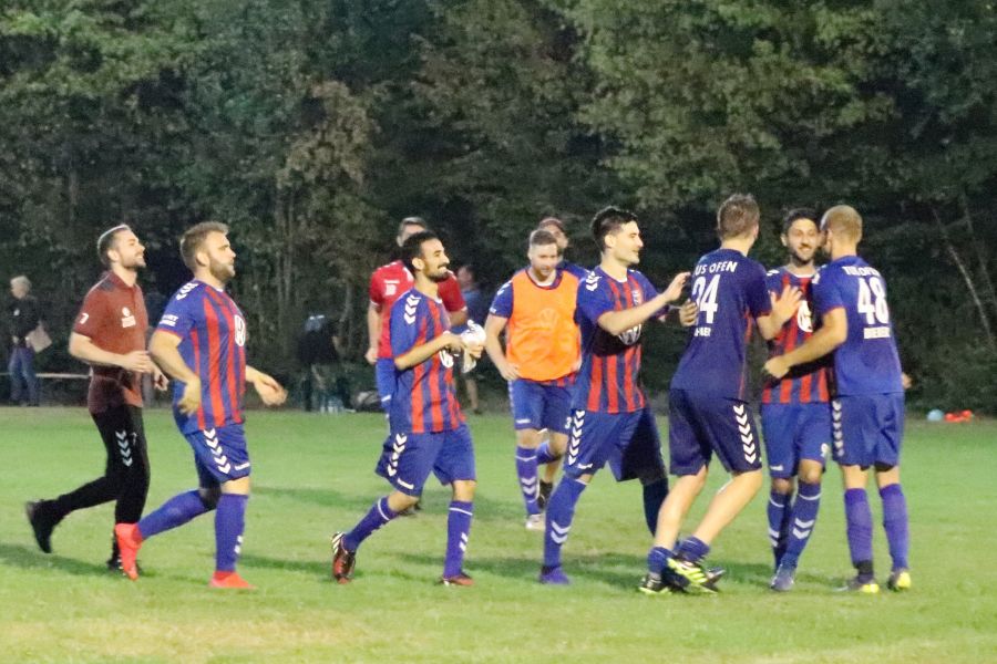 Gerd Marten, Ofens neuer Fussballobmann im Herrenbereich, freute sich mit dem gesamten TUSO1 und übernahm direkt die Regie im traditionellen Siegerkreis!