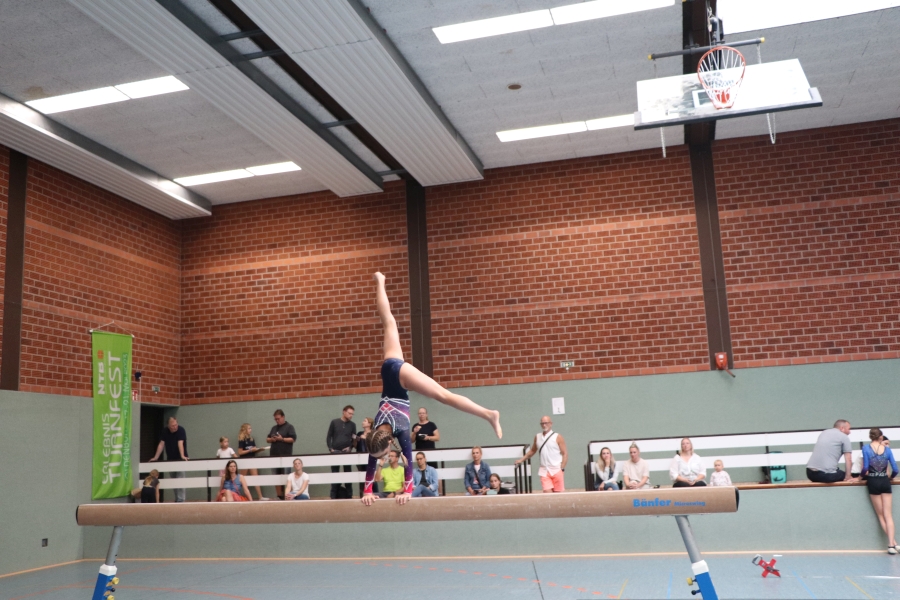 Am Sonntag war es dann soweit: Die Spannung in der Halle war spürbar, die Ofener Turnerinnen präsentierten sich in neuen Trikots – Danke an http://@goldenburg_bau . Lange hatte man trainiert und jetzt sollte in jeweils nur wenigen Sekunden die Leistung auf den Punkt genau erbracht werden. Wenn dann die Aufregung dazu kam und mal etwas nicht so ganz klappte, dann flossen auch schon mal ein paar Tränen. An erster Stelle steht jedoch das Erlebnis, bei so einer Veranstaltung dabei zu sein!