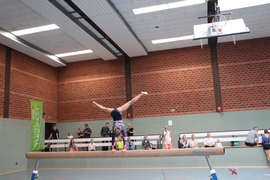 Ein ganz besonderes Sporterlebnis fand am Wochenende vom 31. August auf den 1. September in Ofen statt: Alexandra setzte mal wieder alle Hebel in Bewegung und holte die Wettkämpfe der Bezirksliga nach Ofen! Bodenläufer wurden von Nachbarvereinen geliehen und die Schwebebalken mussten aus der Schulsporthalle transportiert werden, Helfer standen bereit und Dank vieler Spenden war in der Cafeteria natürlich auch wieder für Nervennahrung gesorgt.
