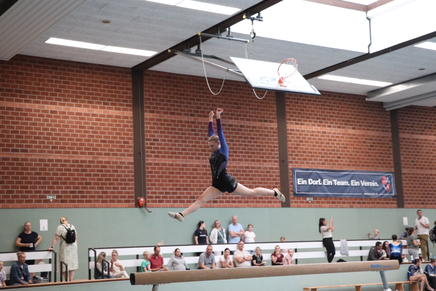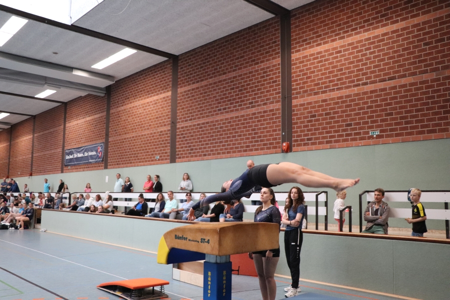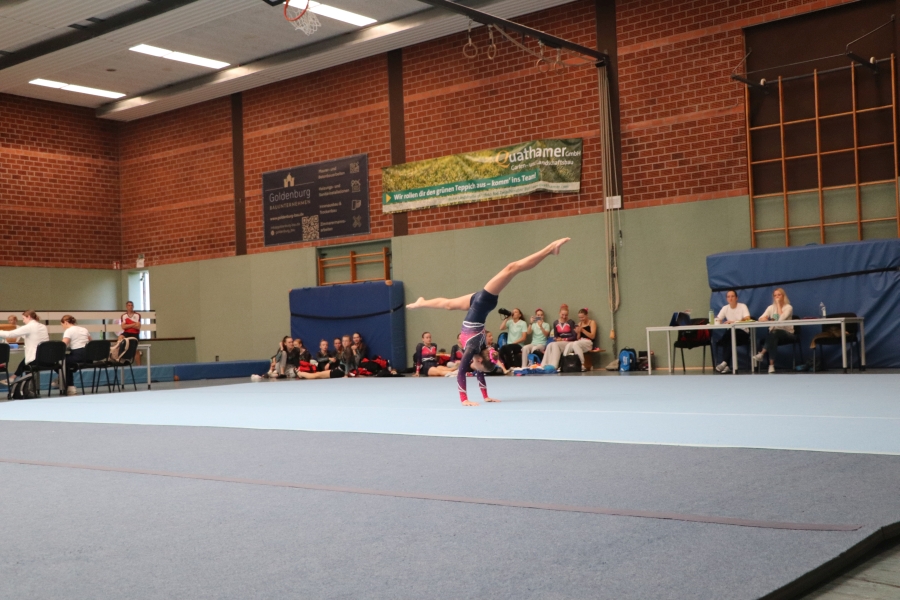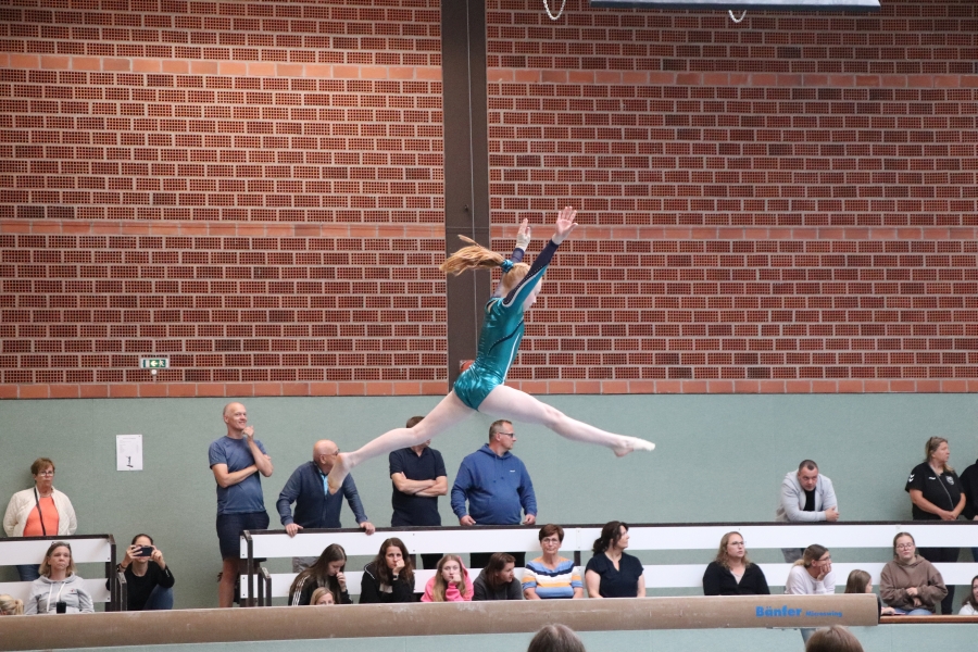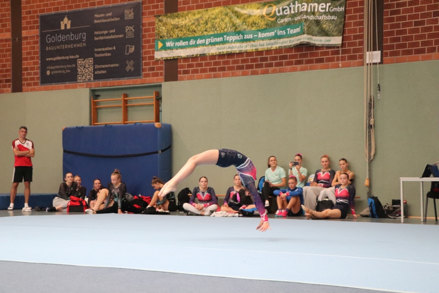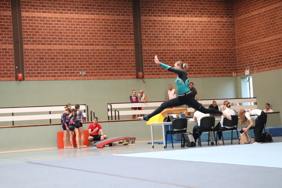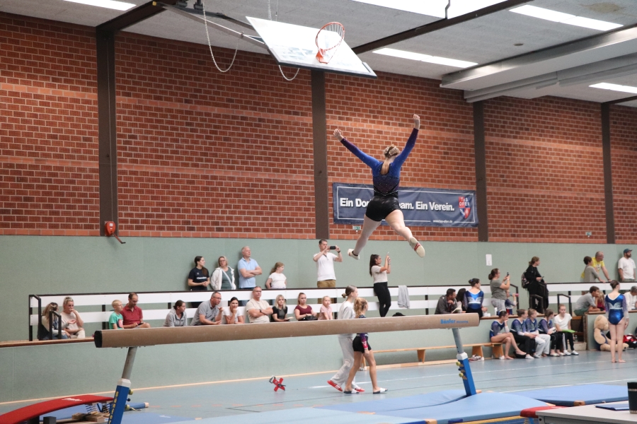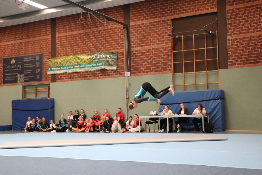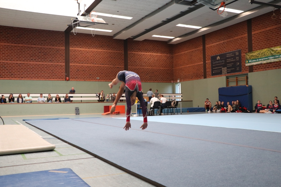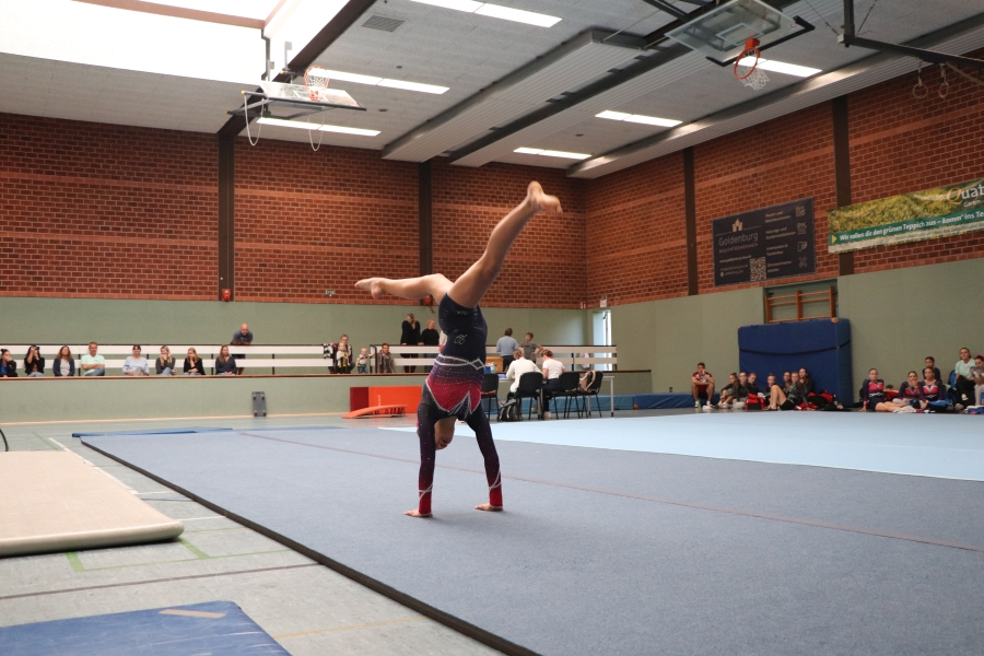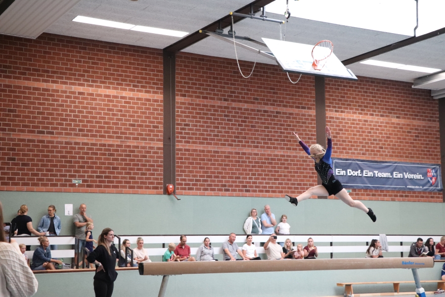 Am Sonntag war es dann soweit: Die Spannung in der Halle war spürbar, die Ofener Turnerinnen präsentierten sich in neuen Trikots – Danke an http://@goldenburg_bau . Lange hatte man trainiert und jetzt sollte in jeweils nur wenigen Sekunden die Leistung auf den Punkt genau erbracht werden. Wenn dann die Aufregung dazu kam und mal etwas nicht so ganz klappte, dann flossen auch schon mal ein paar Tränen. An erster Stelle steht jedoch das Erlebnis, bei so einer Veranstaltung dabei zu sein!
