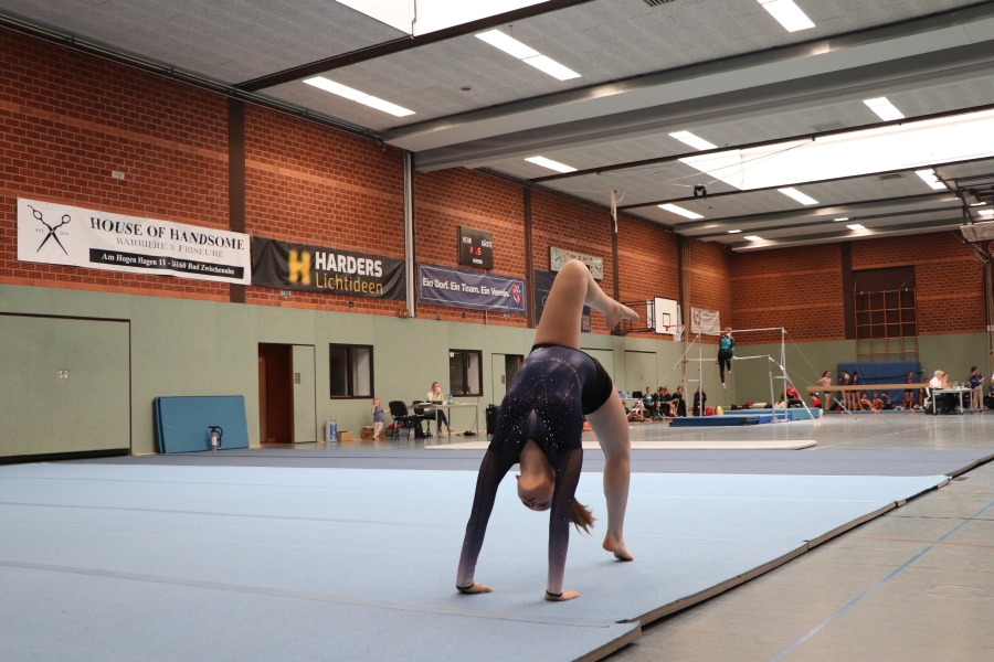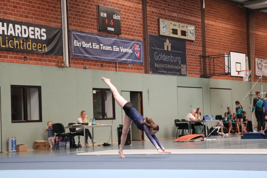 Am Sonntag war es dann soweit: Die Spannung in der Halle war spürbar, die Ofener Turnerinnen präsentierten sich in neuen Trikots – Danke an http://@goldenburg_bau . Lange hatte man trainiert und jetzt sollte in jeweils nur wenigen Sekunden die Leistung auf den Punkt genau erbracht werden. Wenn dann die Aufregung dazu kam und mal etwas nicht so ganz klappte, dann flossen auch schon mal ein paar Tränen. An erster Stelle steht jedoch das Erlebnis, bei so einer Veranstaltung dabei zu sein!