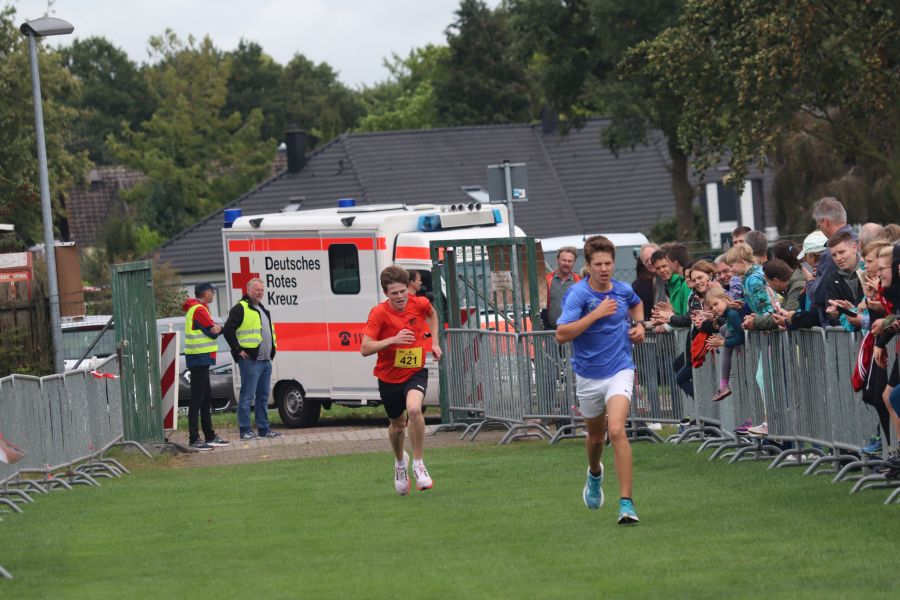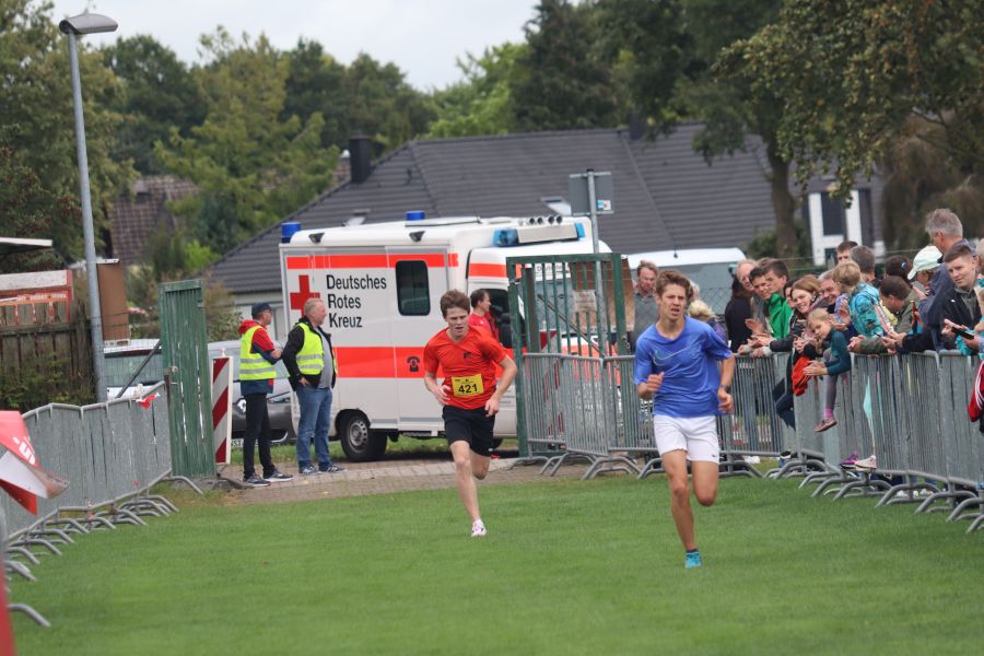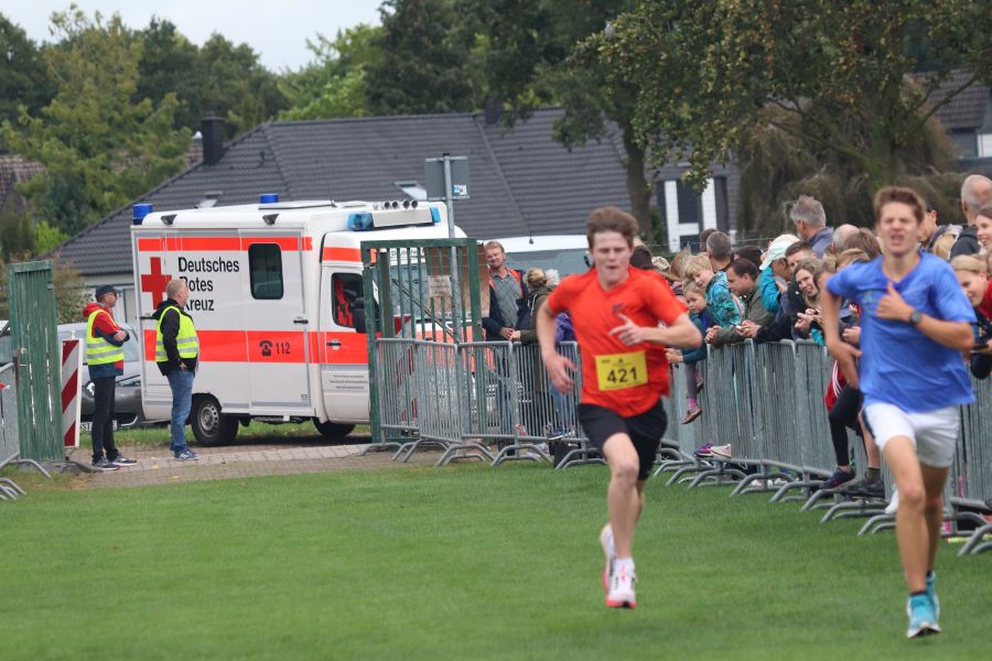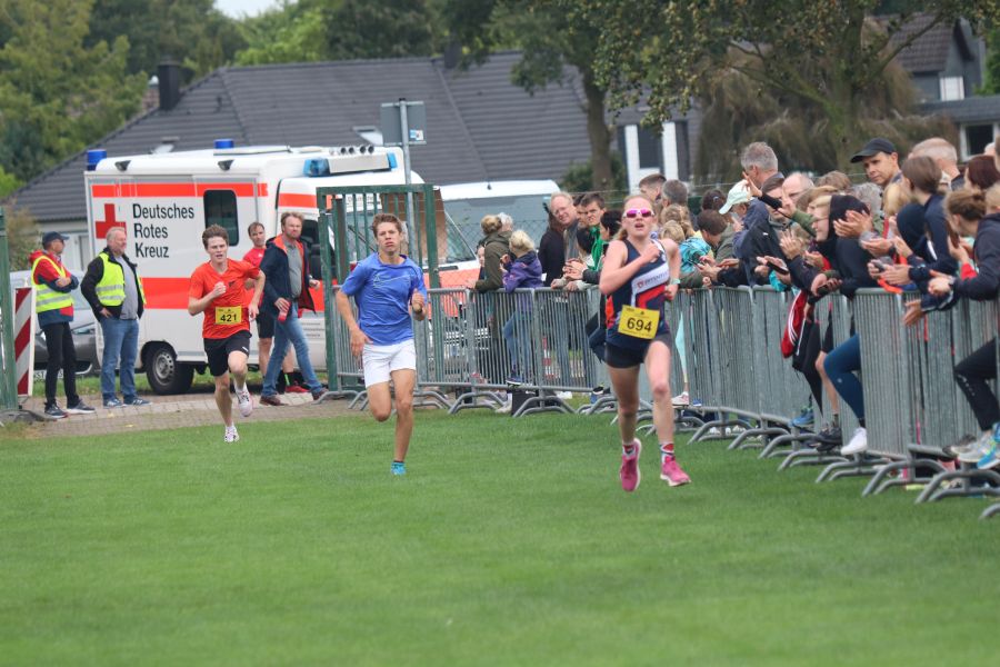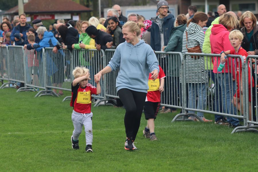 Zu Beginn der Planungen für den Herbstlauf kamen noch Zweifel auf, ob es wohl zu schaffen sei, den Ablauf mit Siegerehrung und Bewirtung, wie vor Corona, in der Sporthalle stattfinden zu lassen. Schließlich können einige große Traditionsveranstaltungen gar nicht mehr stattfinden, da ehrenamtliche Unterstützung fehlt. Die große Frage war: „bekommen wir genug Helfer*innen zusammen?“ Immerhin muss die Halle vor dem Lauf mit Teppichfliesen ausgelegt, Tische und Bänke aufgestellt und Tresen für Kaffee, Kuchen und Getränke aufgebaut werden. Am Veranstaltungstag selber – immerhin ein Feiertag, den viele auch gerne als Brückentag nutzen – muss ausreichend Personal vor Ort sein und abends soll dann schließlich auch alles wieder abgebaut und aufgeräumt werden. Wir haben uns also für diesen Aufwand entschieden und dem Helferaufruf sind viele engagierte Unterstützer*innen gefolgt. Alle haben mit angepackt und zum Abbau kamen dann auch noch Mitglieder unserer neuen Rugby-Abteilung und einige Basketballer dazu und so war dann schnell alles wieder aufgeräumt und die Basketballer konnten am gleichen Abend sogar noch in der Halle trainieren.