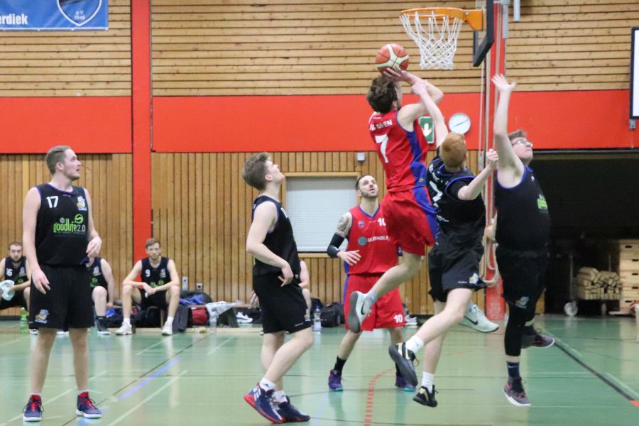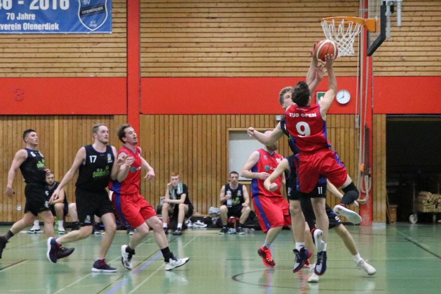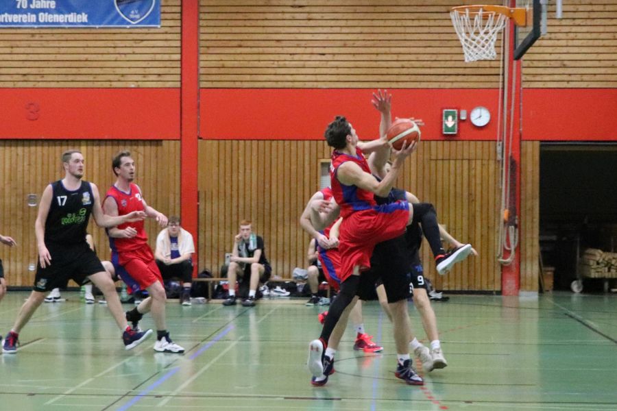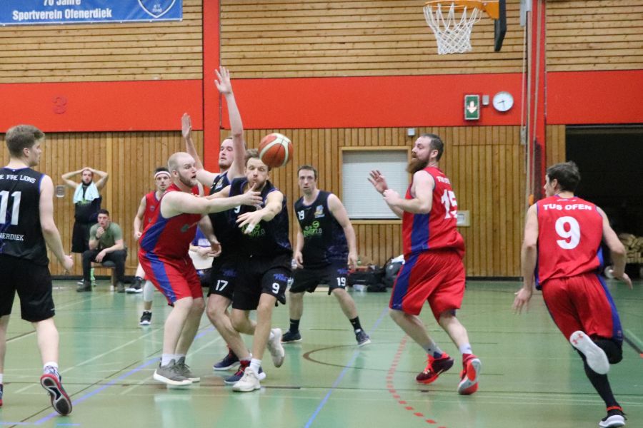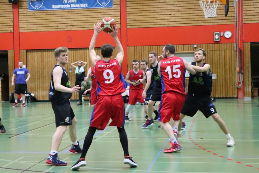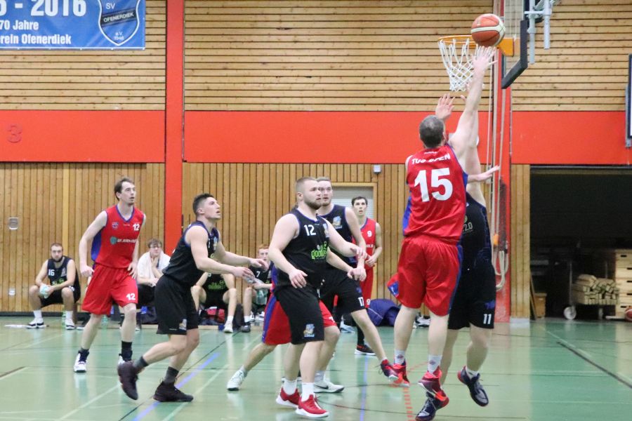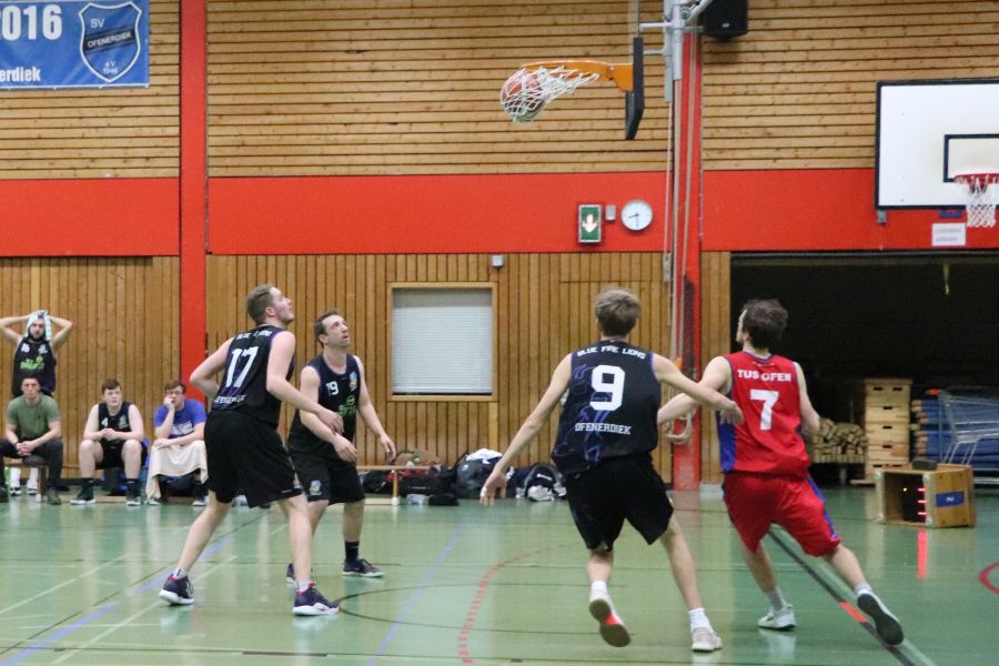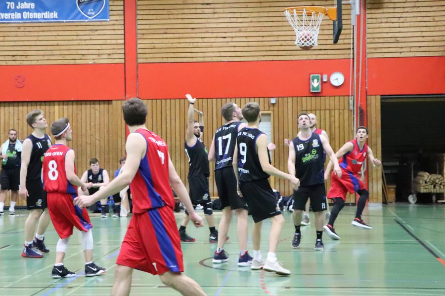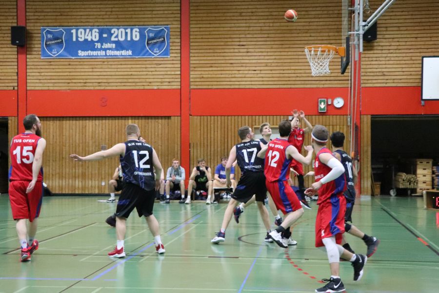 Am Samstagabend herrscht brodelnde Stimmung in Ofenerdiek! Die Ofener 49ers sind zu Gast und haben sich ein hervorragendes Publikum mitgebracht. Die Zuschauer bekommen ein schnelles, körperbetontes, spannendes Spiel zu sehen und feuern ihre Mannschaft lautstark an. Zu Beginn scheint auf beiden Seiten etwas Hektik zu herrschen, dann kehrt aber beim Ofener Team nach und nach mehr Ruhe ein und die Spielzüge führen souverän zum wohlverdienten Erfolg. Am Ende muss sich der SV Ofenerdiek II dem Tabellenersten mit 63:56 geschlagen geben.