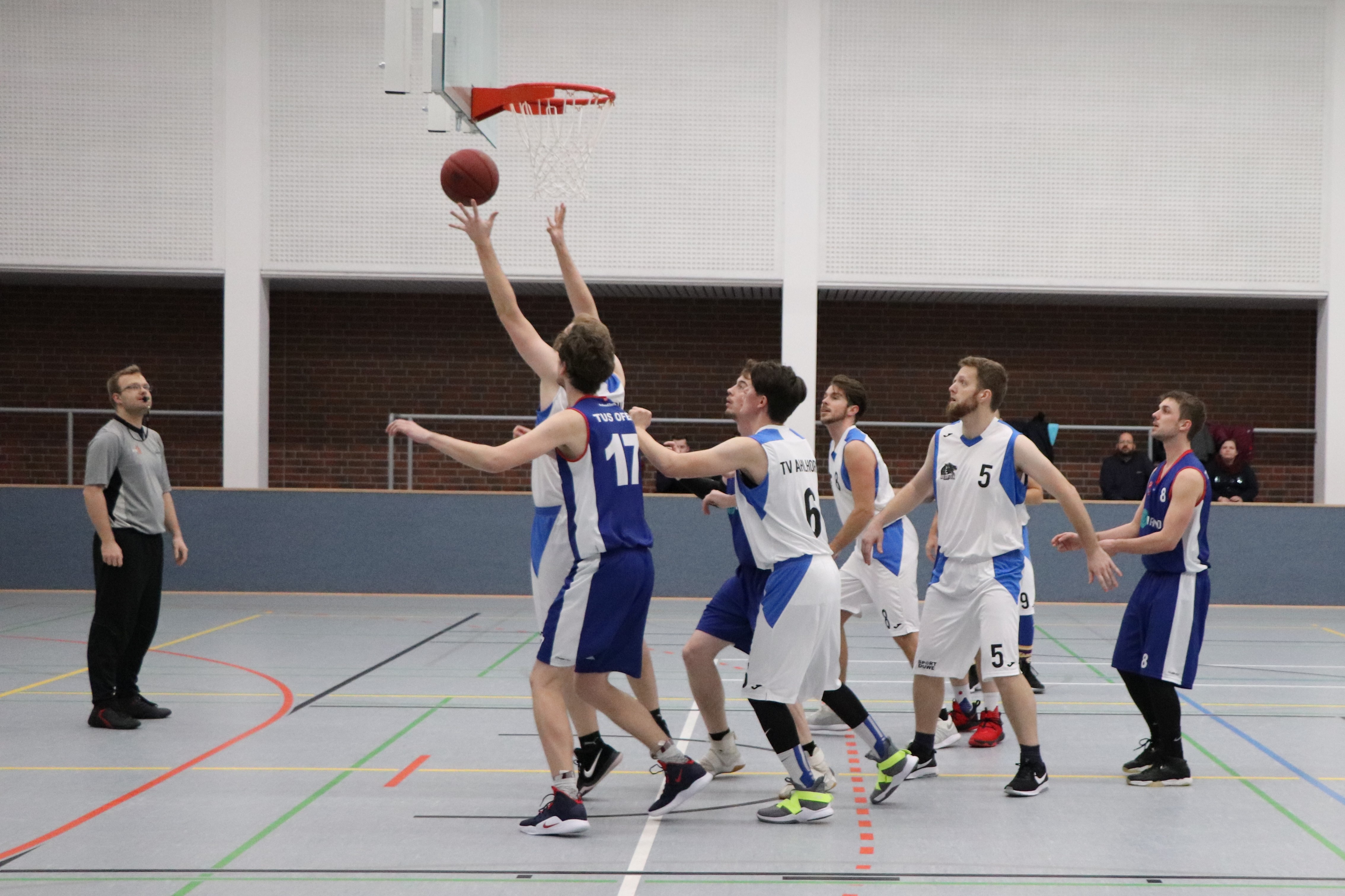 Zu Beginn des ersten Viertels zeigte sich, dass der TV Ahlhorn hier heute kein Fallobst für die 49ers spielen wollte. Angefeuert von den knapp 50 Zuschauern, peitschten sie ihr Team immer wieder zu guten Offensivaktionen und wichtigen Stopps in der Defensive. Die 49ers taten sich schwer gleiches zu tun. Viele offene Würfe fielen nicht und der Ball wurde nur zu selten unters Brett gebracht. Angeführt von einem erneut offensivstarken Paul Nachtigal (23 Punkte) erarbeiteten sich die 49ers jedoch zunächst eine kleine Führung von 14:17 aus Sicht des Gastgebers.