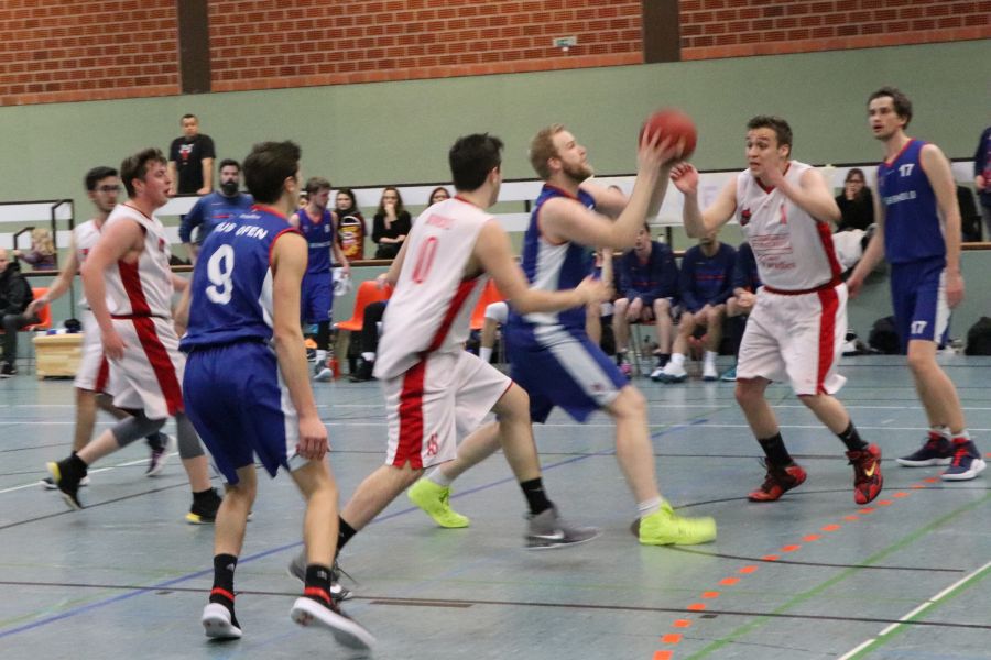 Während die Gäste sich in der Offensive weitgehend auf die Qualitäten ihrer Topscorer Lucas Perl und Philip Julius Mestinsek verließen, lag der Schlüssel zu Erfolg auf der anderen Seite in der Ausgeglichenheit des Ofener Kaders. Die schnellen Guards der 49er kamen immer wieder zu Fast Break Chancen und wenn es ins Set-Play ging, konnten die „Big Men“ um Alex Müer und Jelto Swalve unterm Korb für Punkte sorgen. Dennoch gestaltete sich das zweite Viertel – vor allem dank einiger Nachlässigkeiten im Abschluss – recht ausgeglichen und es stand lediglich eine 13-Punkte-Führung auf der Anzeigetafel als es in die Kabine ging (35:22).