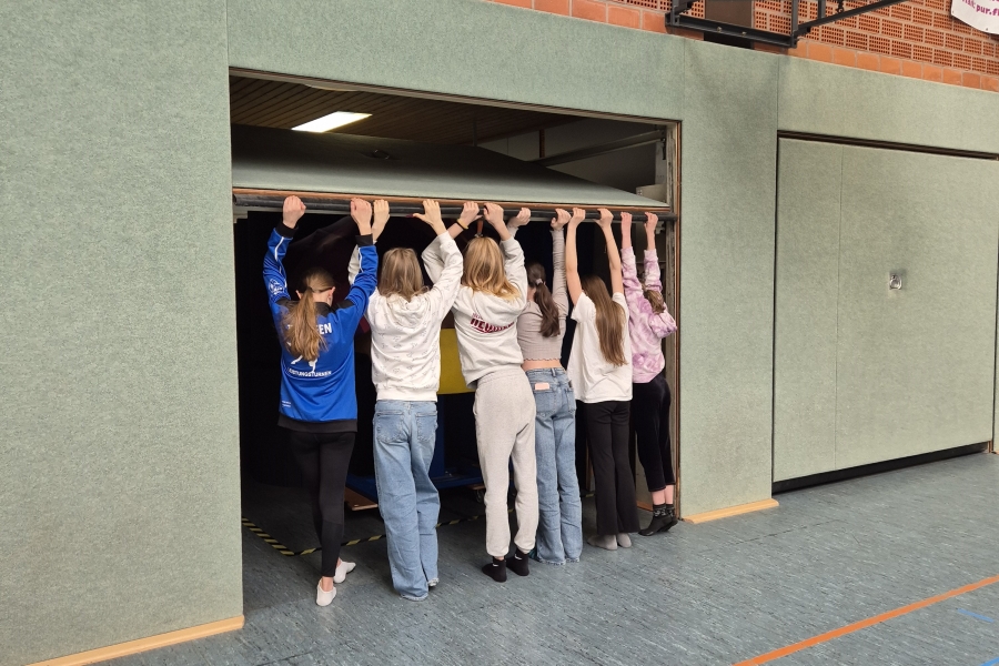Nachdem Alexandra sich schon im Eingangsbereich der Sporthalle über den Grünbelag her machte, nutzten auch die Gerätturnerinnen die Osterferien um einmal die Bodenläufer, die bei intensivem Training schon so manchen Schweißtropfen abbekommen hatten, einmal gründlichzu zu reinigen und für die kommenden Wettkämpfe vorzubereiten.
