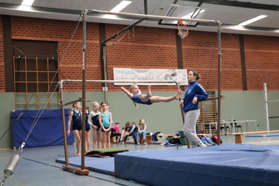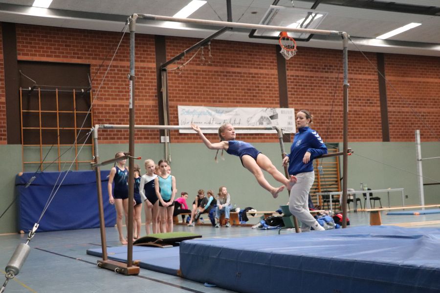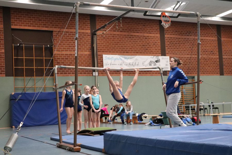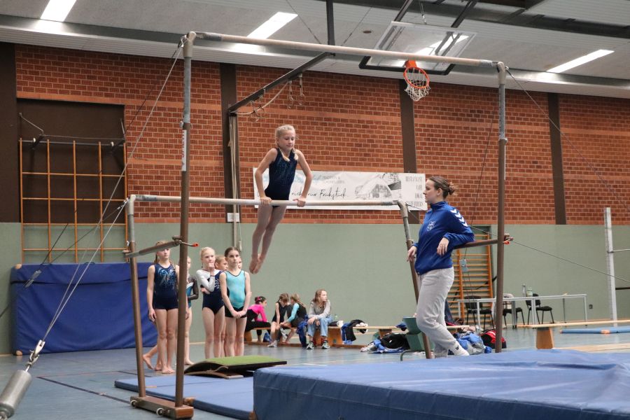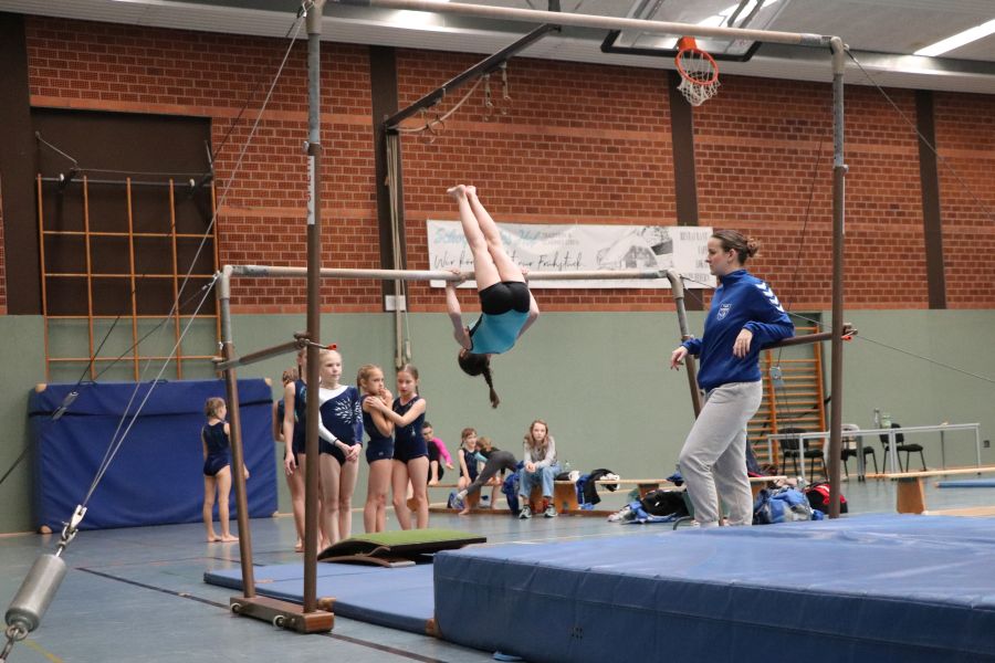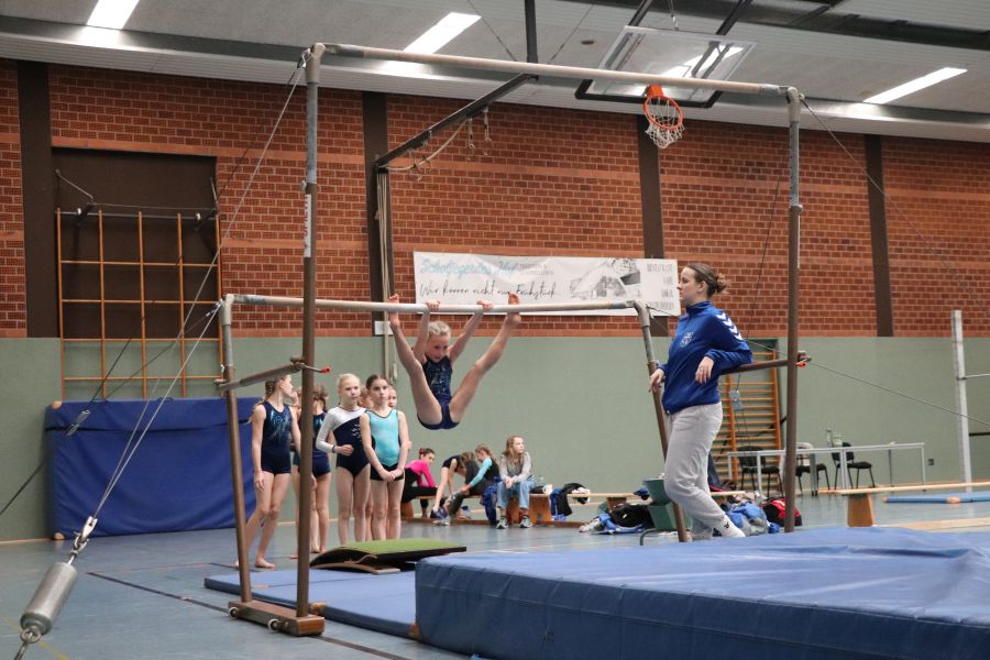 Das, was es am gestrigen Samstag in der Sporthalle des TuS Ofen zu sehen gab, ist schon bewundernswert. Ein Gerätturnwettkampf in Ofen, das hat es so in dieser Form noch nicht gegeben! Alexandra Beling nahm die Planung in die Hand und hat nicht nur die fehlenden Geräte wie z.B. einen Sprungtisch und zusätzliche Bodenläufer und Weichbodenmatten bei Nachbarvereinen ausgeliehen – an dieser Stelle auch ein Dankeschön an die beteiligten Vereine – hierzu gehörte auch die Organisation eines Anhängers für den Transport. Danke Alexandra!