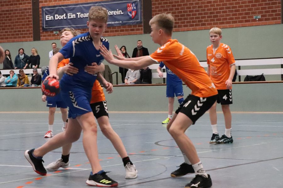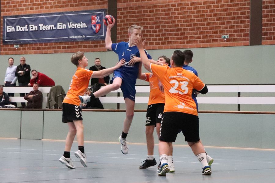 Am Sonntagnachmittag konnte sich die Handball C-Jugend des TuS Ofen unter Trainer Marc Alexander Lemke überzeugend gegen den Tabellendritten, die HSG Grüppenb./Bookholzberg durchsetzen. Nach einem Halbzeitstand von 17:8 bekamen die Zuschauer auch in der zweiten Spielhälfte ein temporeiches, spannendes Spiel zu sehen und das Ofener Team bleibt nach einem Endstand von 31:24 hinter der JMSG Ol