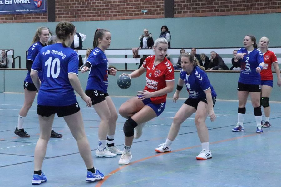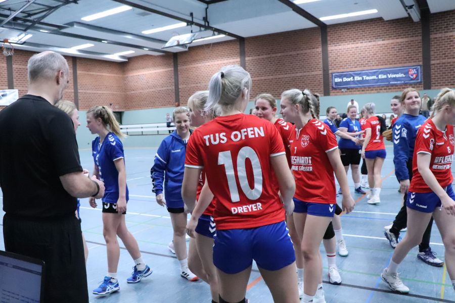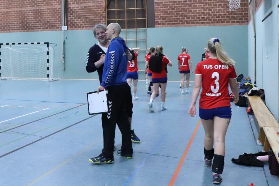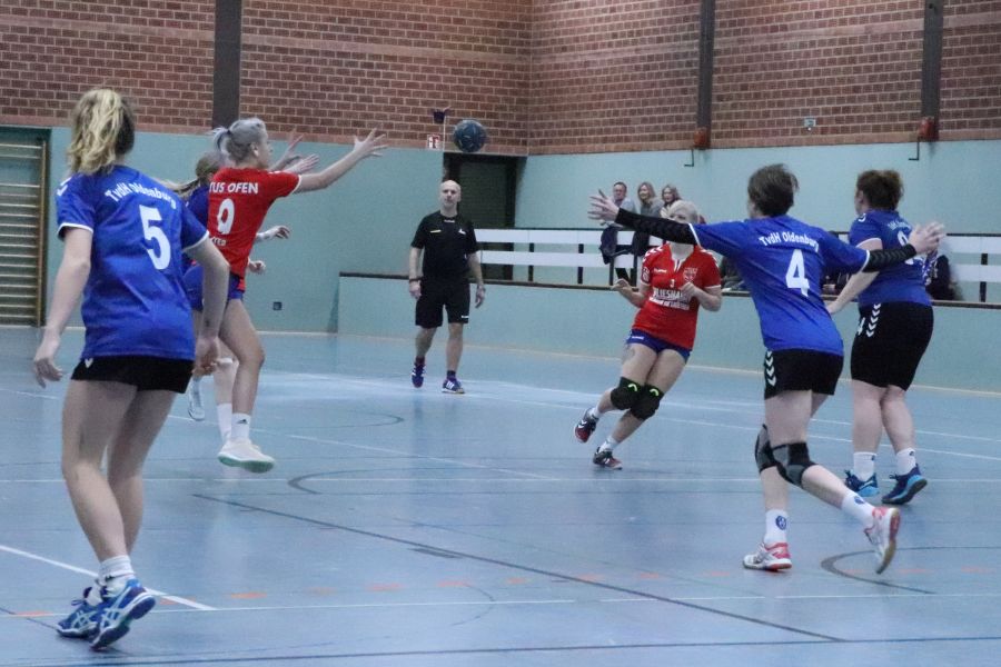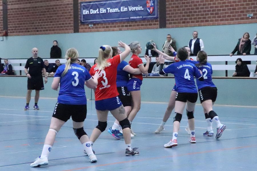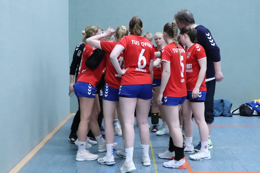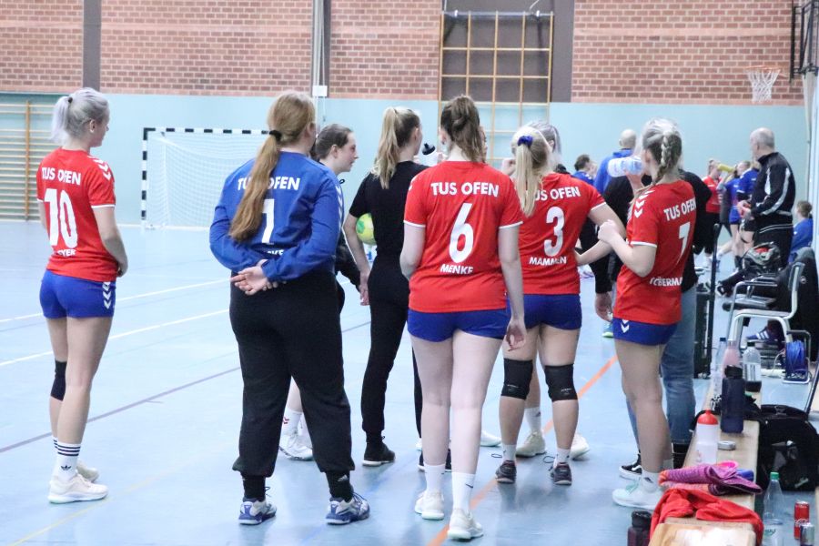 Nach vorausgegangenen Instruktionen durch Trainer Torsten Eiben lieferten die Handball Damen des TuS Ofen den Zuschauern mal wieder ein spannendes Spiel gegen die Mannschaft des TvdH Oldenburg III. Die Abwehrspielerinnen beider Mannschaften leisteten gute Arbeit. Nach einem Halbzeitstand von 11:7 konnten die Damen des TvdH gegen Ende der zweiten Halbzeit auf eine Differenz von zwei Toren verkürzen, aber das Ofener Team ließ sich nicht beirren und konnte sich schließlich über einen Endstand von 24:18 Toren freuen.