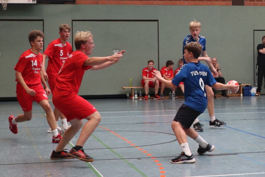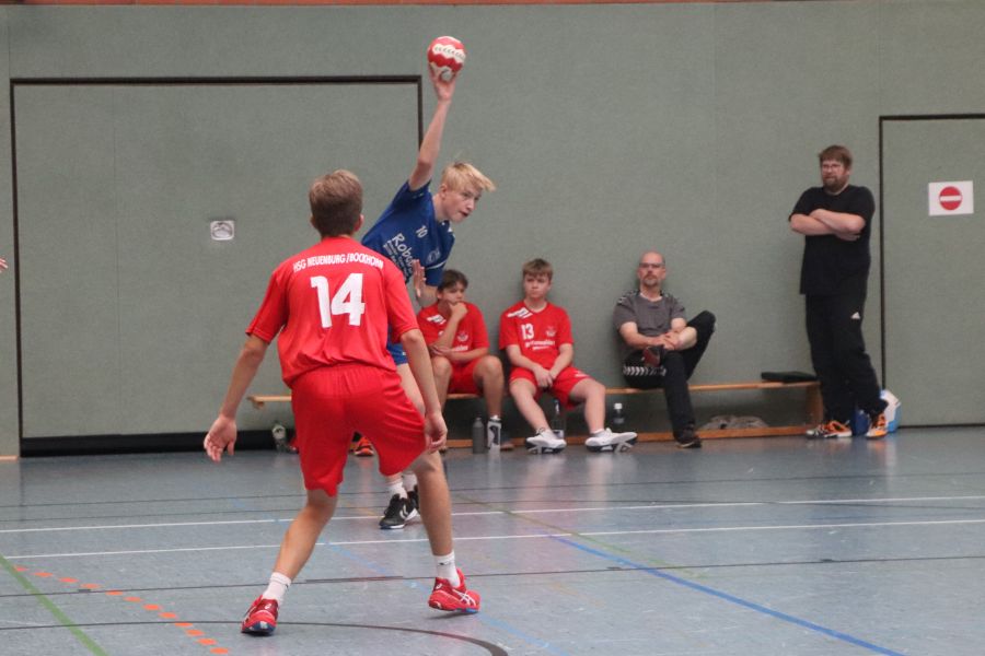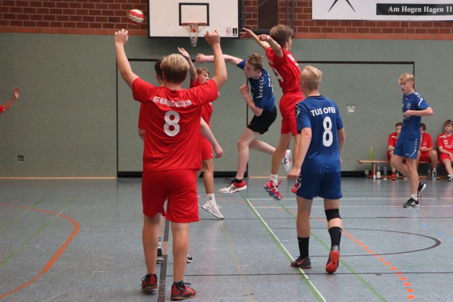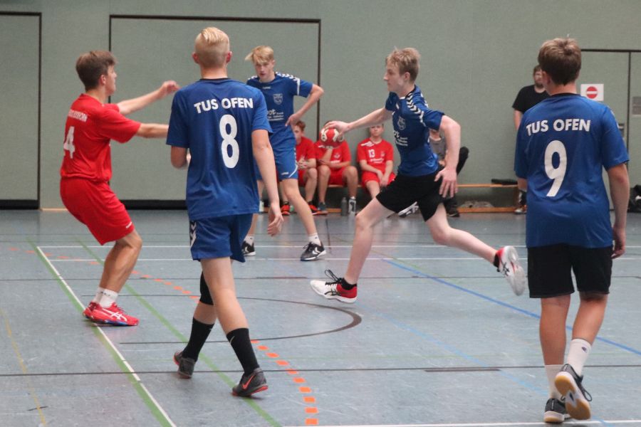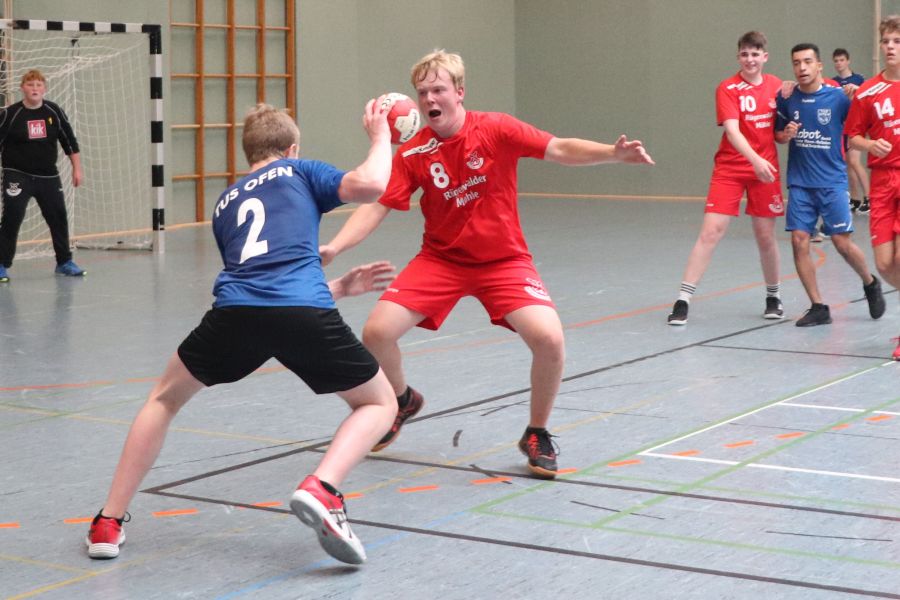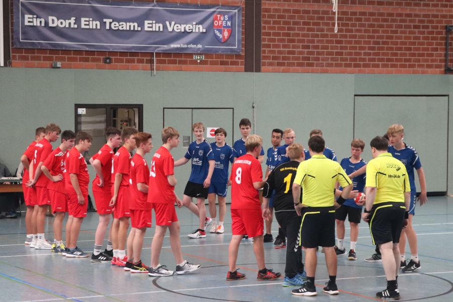 In der Sporthalle trat währenddessen (fast ohne Publikumsunterstützung) die männliche B-Jugend unter Trainer Marc-Alexander Lemke gegen die Gastmannschaft des HSG Neuenburg/Bockhorn an. Bereits zur Halbzeit führten die Ofener mit 11:7 und so konnte man sich dann letztlich auch über einen Endstand von 22:17 Toren freuen.