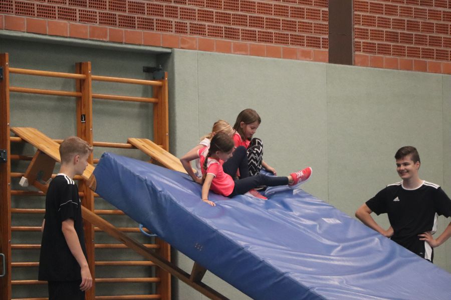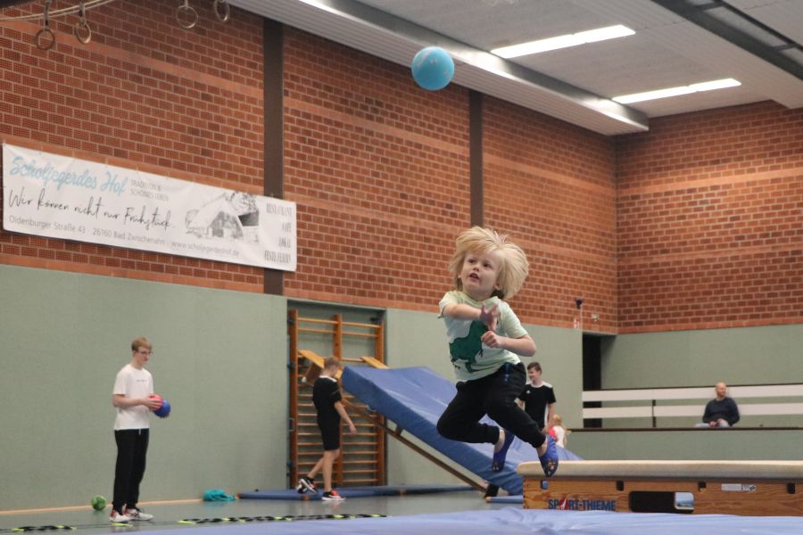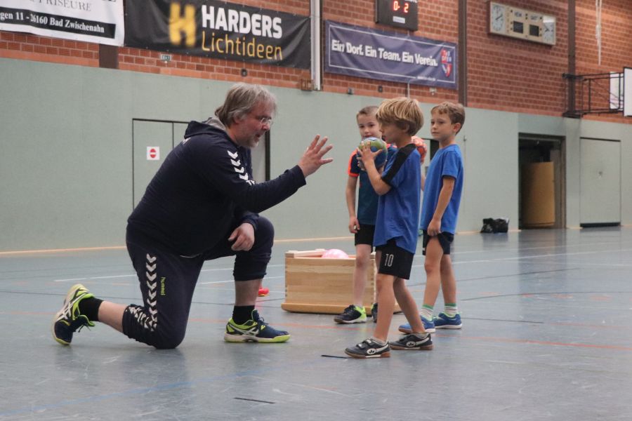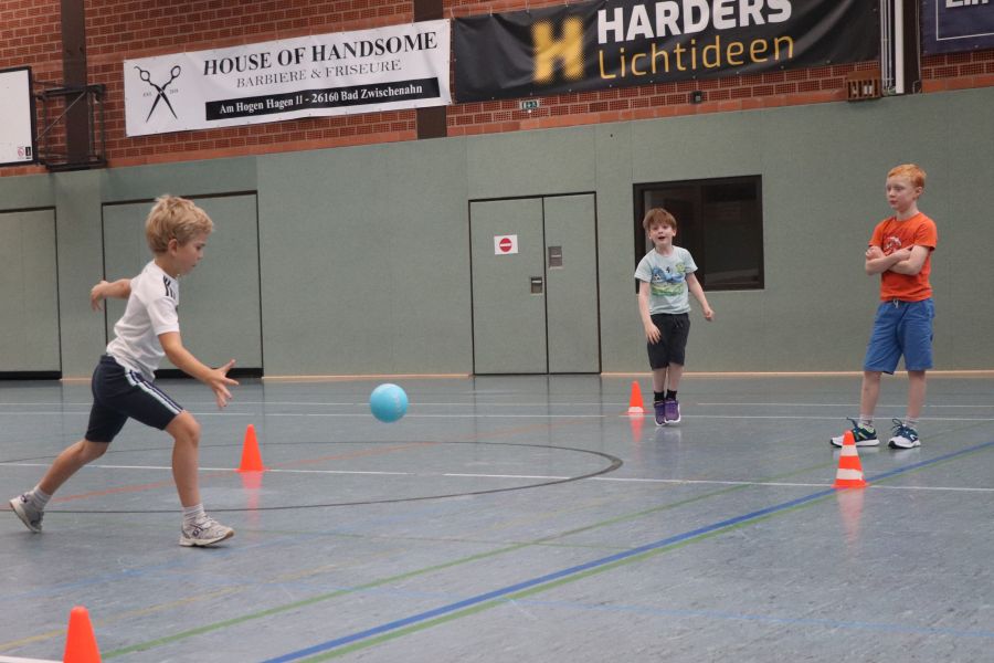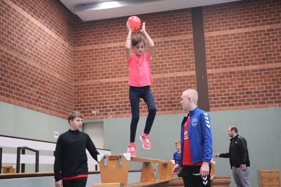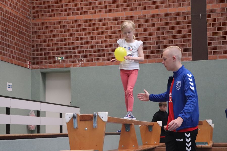 Nach anfänglichen Missverständnissen bei der Terminfindung hat es dann am Sonntagvormittag doch geklappt. Das Schnuppertraining für die Handball-Jugend ab Jahrgang 2015 fand in der Sporthalle am Rudolf-Kinau-Weg statt. Abteilungsleiterin Simone, die Trainer Torsten, Marc, Pascal und Trainerin Annika hatten alles gut durchgeplant, in der Halle verschiedene Trainingsstationen aufgebaut und hier konte nun mit Freue trainiert werden. Marc konnte im Vorfeld fast seine gesamte Mannschaft zur Mithilfe motivieren und so war dann auch die Absicherung und Hilfestellung an allen Stationen gewährleistet. – Vielen Dank für die gute Organisation!