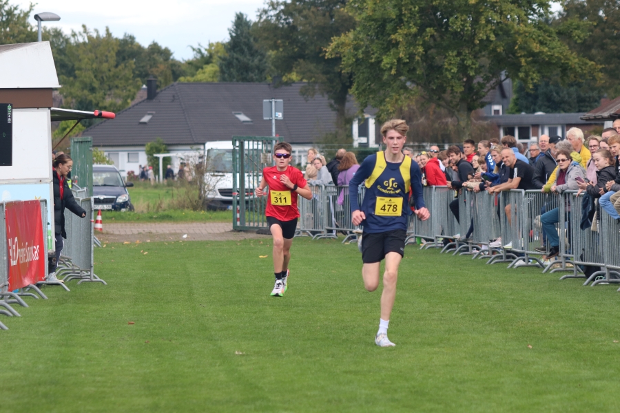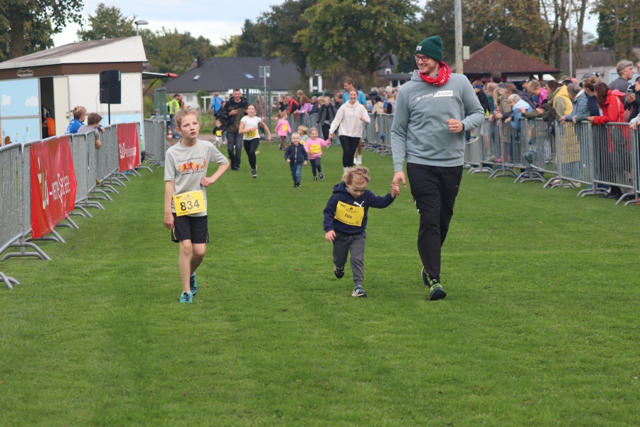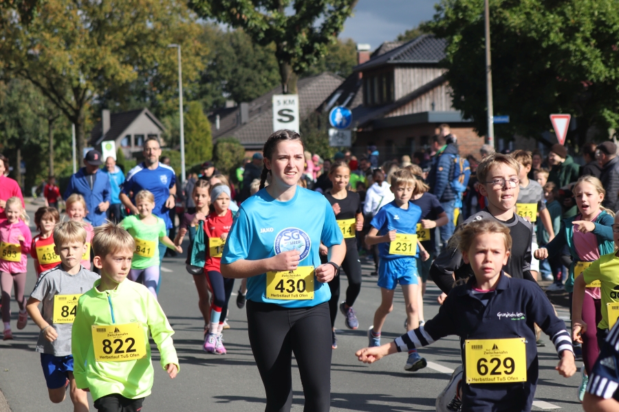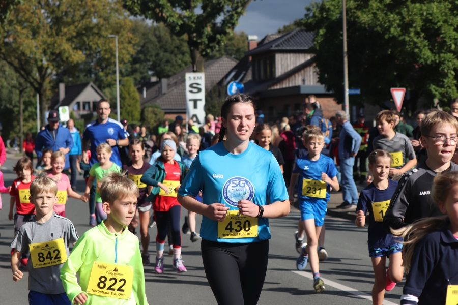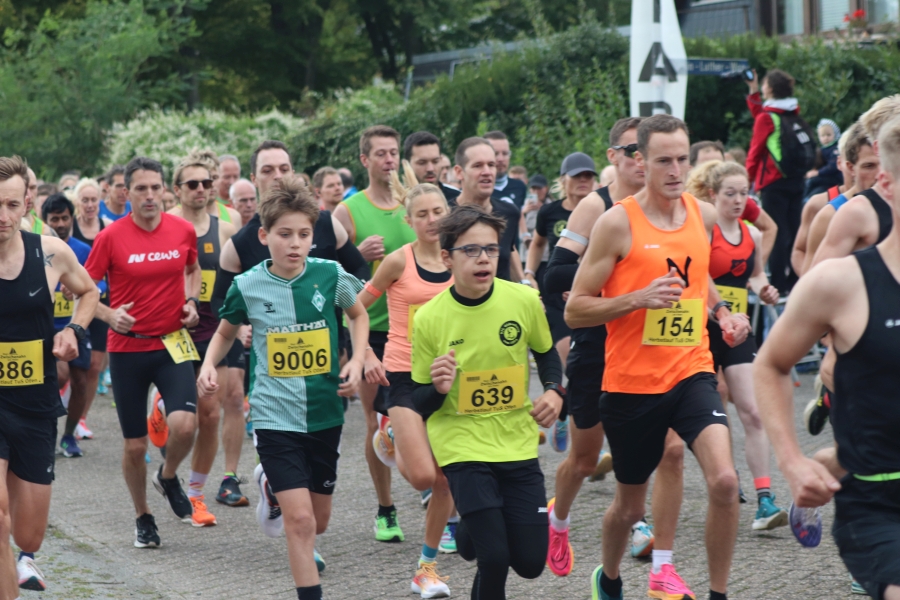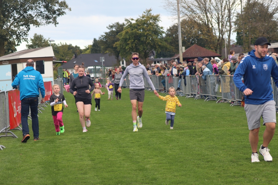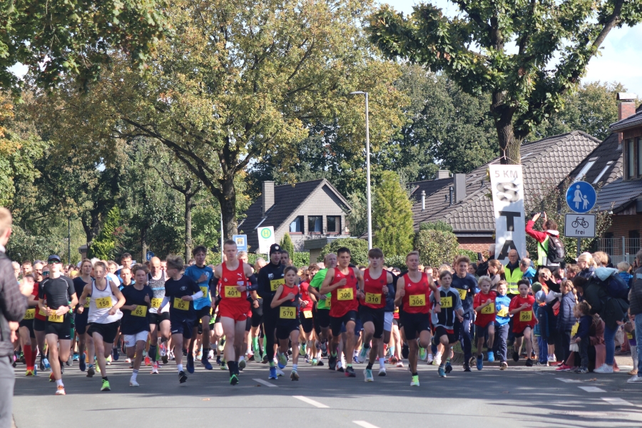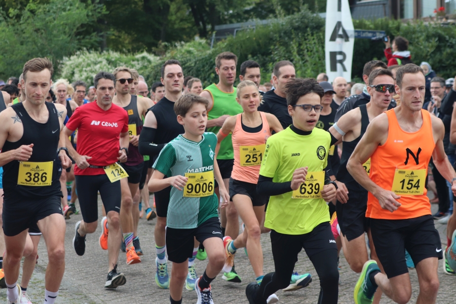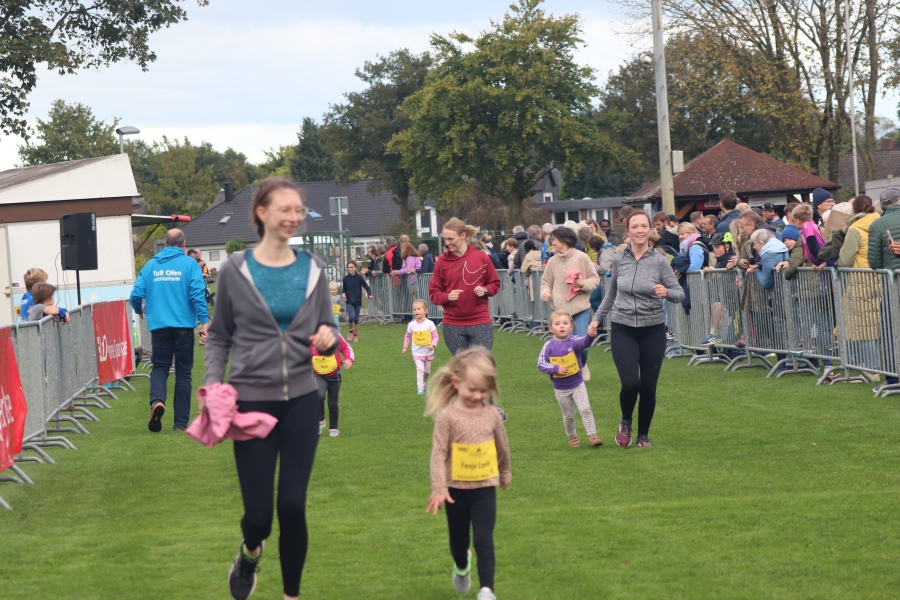 Der Ofener Herbstlauf ist eine Veranstaltung für die ganze Familie. Hier sind schon die Jüngsten beim Kinderlauf dabei, Schulkinder zeigen beim 3 km Lauf was sie können und beim 5 km und 10 km Lauf sind Altersklassen von jung bis alt vertreten. Laufen hält jung – das wird wohl durch ältesten Teilnehmer und Teilnehmerinnen bestätigt. Ich denke, diese Leistungen sind es wert, einmal besonders hervorgehoben zu werden. Ältester Läufer war Hermann Karl Harms vom VfL Oldenburg mit Jahrgang 40 (M80) mit einer Einlaufzeit von 30:47 min über 5 km, älteste Läuferin über diese Distanz war Aenne Rabe, Jahrgang 52 (W70) mit einer Zeit von 43:25 min. Ältester Teilnehmer bei der Strecke über 10 km war Klaus Fromme, ebenfalls vom VfL Oldenburg, Jahrgang 42 (M80) mit einer Zeit von 51:12 min und älteste Läuferin in dieser Kategorie war Gabriele Rost-Brasholz von der KG Bremen Nord, Jahrgang 46 (W75) mit einer Zeit von 1:03:50 Std. Hut ab, vor diesen Leistungen!