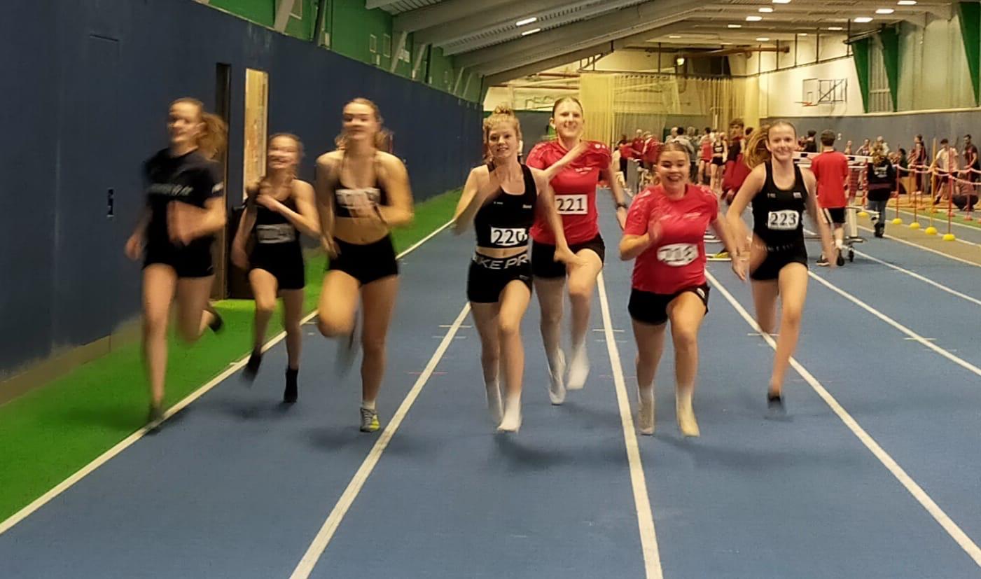 Highlights waren für alle Athletinnen die Sprint- und Hürdenläufe. Witterungsbedingt konnten die Sprintdisziplinen in den letzten Wochen nur sehr eingeschränkt trainiert werden. Umso erfreulicher die wirklich guten Ergebnisse. Jeweils 60 Meter wurden zurückgelegt. Merle (U18) überlief die Hürden in 11,94 Sek. und belegte den 4. Platz, Jenna (U14) gewann ihren Hürdenvorlauf in 12,40 Sek. und wurde 9. von 20 Starterinnen, ohne Hürden lief sie in 9,59 Sek. ins Ziel.  Martha (U16) lief über die Hürden in sehr guten 12,32 Sek.,  ohne Hürden konnte sie unter 10 Sek. verbuchen. Leefke verbesserte ebenfalls stark ihre Sprintqualitäten – 12,35 Sek. über die Hürden und 9,65 Sek. über die „flache“ Strecke standen auf der Ergebnisliste. Hanne (U16) war schnellste der Tus Athletinnen im 60m Sprint in sehr guten 9,20 Sekunden. Nach einer langen Trainingspause verpasste Lykka die 10 Sek.-Grenze. nur knapp.