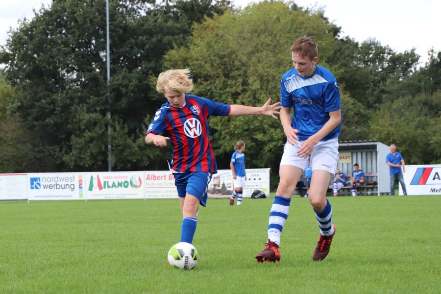 Das war ein guter Einstand in ein intensives Trainingswochenende. Heute stand das Team dann schon wieder auf dem Platz und zu Beginn konnte man meinen, dass das Spiel vom Freitag und das Training am Samstag wohl etwas zuviel gewesen sind. So lag man zur Halbzeit mit 0 : 2 gegen die JSG Wechloy II zurück. Dann besann man sich aber wohl auf den im Trainingslager gestärkten Teamgeist, nahm noch einmal alle Kräfte zusammen und … siegte mit 3 : 2!