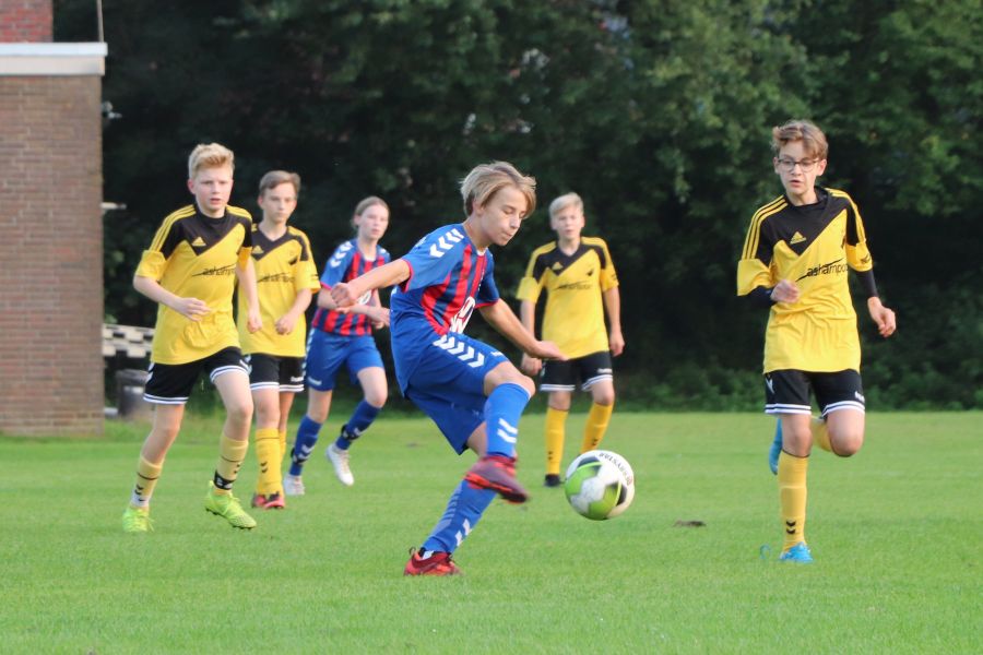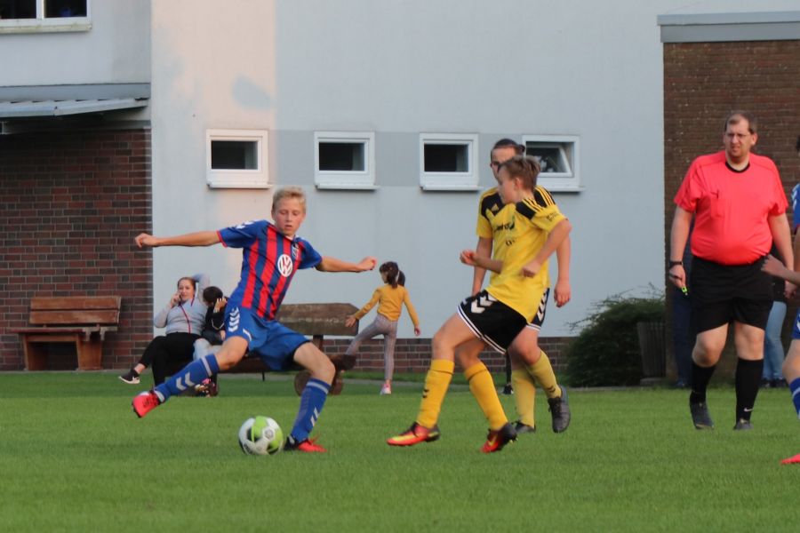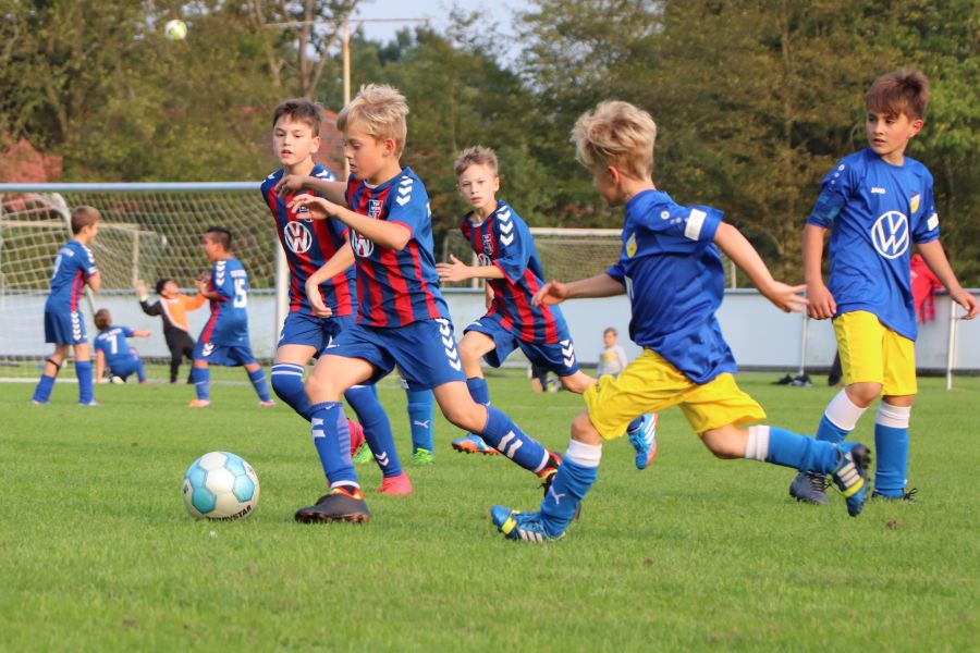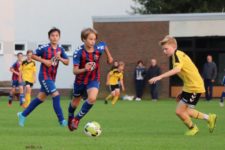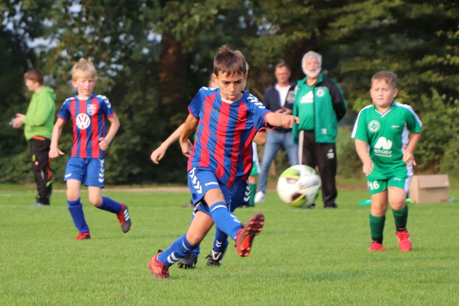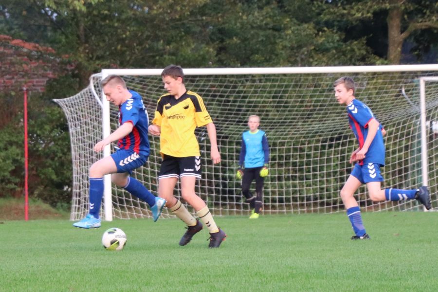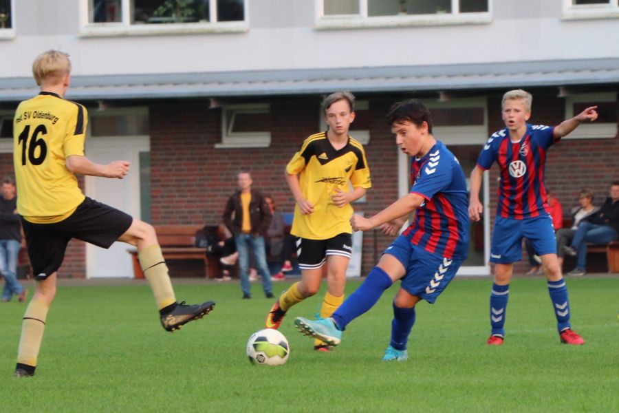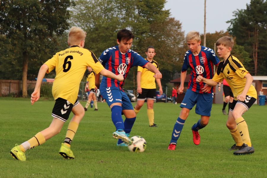 Parallel zu dem Spiel der E1-Jugend spielte die Mannschaft der JSG Wechloy, die von Sascha Lorenzen, Dennis Appeldorn und Cord Bergholz trainiert wird, gegen die JSG Oldenburg-Nord. Diese Mannschaft gehört zum Post SV Oldenburg. Unglücklicherweise war die heimische C1-Jugend nicht so erfolgreich, wodurch sie leider auch verdient mit 3:8 verlor. Nachdem man in der ersten Halbzeit kaum ins Spiel gefunden hat und zur Halbzeit mit 0:2 hinten lag, dachte man am Anfang der zweiten Halbzeit, dass man das Spiel noch ausgeglichen gestalten könnte. Es fiel der Anschlusstreffer durch Theo, der in der ersten Halbzeit nicht spielte. Das war es dann auch wieder mit der Euphorie. Zwischendurch gab es noch Lichtblicke durch die Tore von Till, aber so richtig konnte man nichts mehr entgegensetzen. Da heißt es nur Kopf hoch und weiter machen!