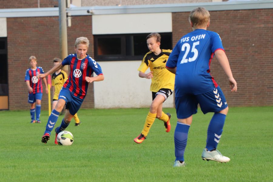 Ab 17:30 Uhr spielte dann auch die E1-Jugend, die gestern von Robert Hampe freundlicherweise gecoacht wurde. Head Coach Ralf Hildebrand fiel leider wegen einer Erkältung aus. Das Team spielte gegen die zweite Mannschaft des TuS Wahnbek. Der Ofener Mannschaft merkte man die Abwesenheit des Head Coaches aber nicht an. Es wurden, wie schon im letzten Spiel, wieder viele Tore geschossen und so gewann man am Ende auch verdient mit 10:2 und freute sich so über einen sehr erfolgreichen Saisonstart.