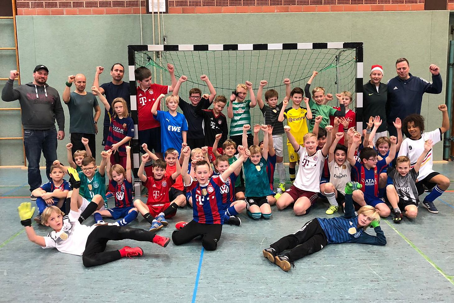 Ein toller Schnappschuss. Unsere Juniorenfußballer der E1, E2 und F1 haben ihre Weihnachtsfeier in den letzten Tagen des Jahres 2018 in der Sporthalle ausgetragen um zum Abschluss noch mal gemeinsam zu kicken.