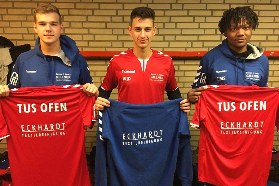 Der TuS Ofen II wird künftig mit neuen Pullovern und Aufwärm-Shirts ein einheitliches Bild abgeben. „Wir möchten uns an dieser Stelle gerne bei der Textilreinigung Eckhardt für das Sponsoring der Trikots bedanken und bei Textildruck Gillner für die Beflockung“, sagt Coach Maik Bruckner.
