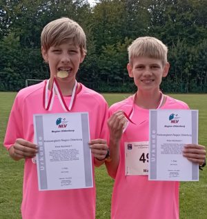 Eine besondere Ehre gab es für Max Wiebeziek und Paul Reimann mit der Normierung für den Kreisvergleichskampf der Region Oldenburg . Bei der in am 14.09.2025 Damme ausgetragenen Veranstaltung haben die beiden Athleten mit ihren Ergebnissen im Kugel, 800m und Staffel (Max) und den 100m, Kugel und 800m (Paul) dazu beigetragen, dass unser Kreis am Ende auf Platz eins gelandet ist.