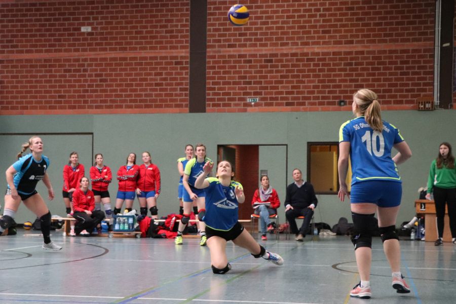 Der OTB startete gut und lag im ersten Satz von Beginn an in Führung. Die SGO Spielerinnen um Mannschaftsführerin Franziska Selke fanden kaum Mittel gegen den geschickt agierenden OTB, der den Satz mit 25:20 für sich entscheiden konnte. Im zweiten Satz verletzte sich abermals Außenangreiferin Lina Medert und musste bereits in dieser frühen Phase des Spiels ersetzt werden. Der befürchtete Bruch im Spiel auf Seiten der SGO blieb jedoch aus und Satz zwei ging mit 25:21 an den Gastgeber. Und auch im dritten Satz konnte sich die SGO mit 25:21 durchsetzen. Der OTB war allerdings nicht gewillt, eine Niederlage hinzunehmen und setzte sich mit aller Kraft im vierten Satz mit 25:21 durch, so dass ein Tiebreak die Entscheidung bringen musste.