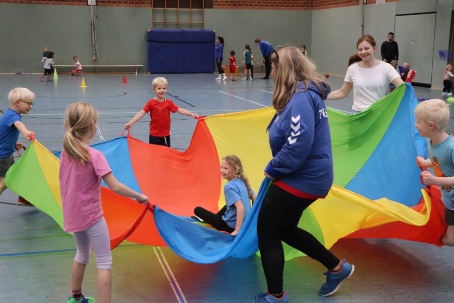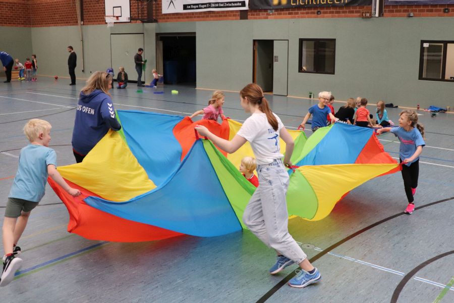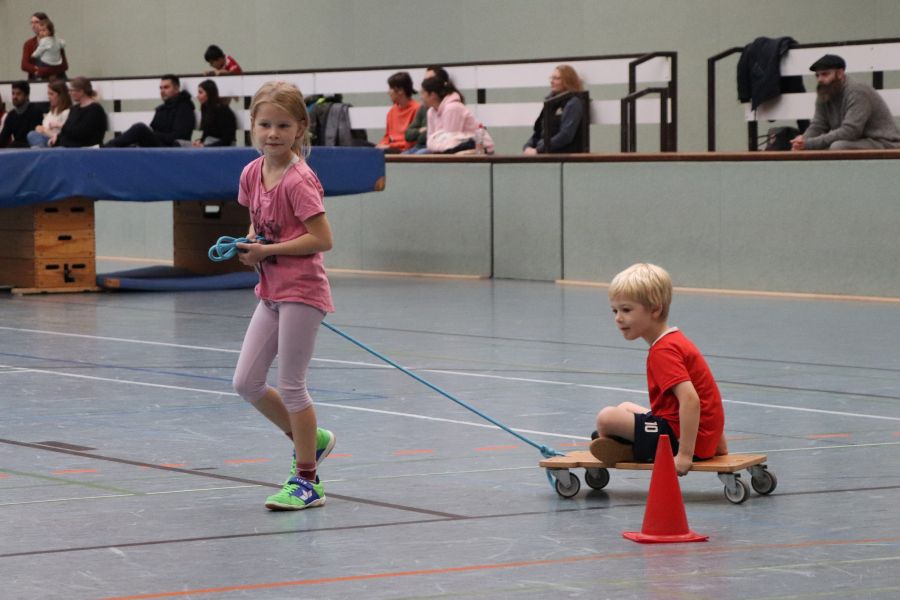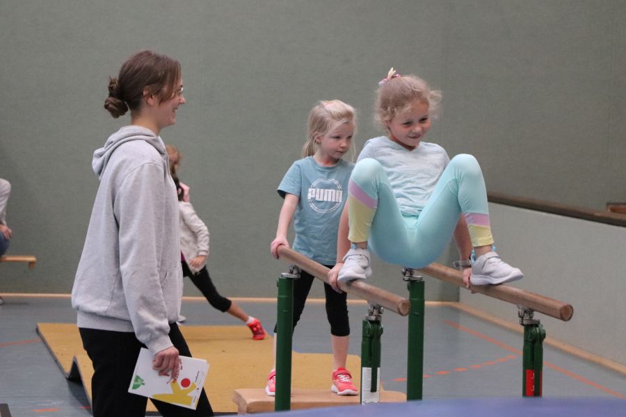 Heute morgen um 8 Uhr trafen die ersten Helfer/innen ein und begannen mit den Vorbereitungen für den Kinder-Turntag. Seit 2014 findet diese bundesweite Aktion des DTB jeweils am zweiten Wochenende im November statt und in diesem Jahr war auch der TuS Ofen wieder dabei. Um 9:30 Uhr waren alle Stationen aufgebaut, das fröhliche Treiben begann und 35 Kinder konnten ihre Fähigkeiten an den verschieden Geräten beweisen.