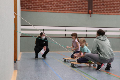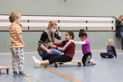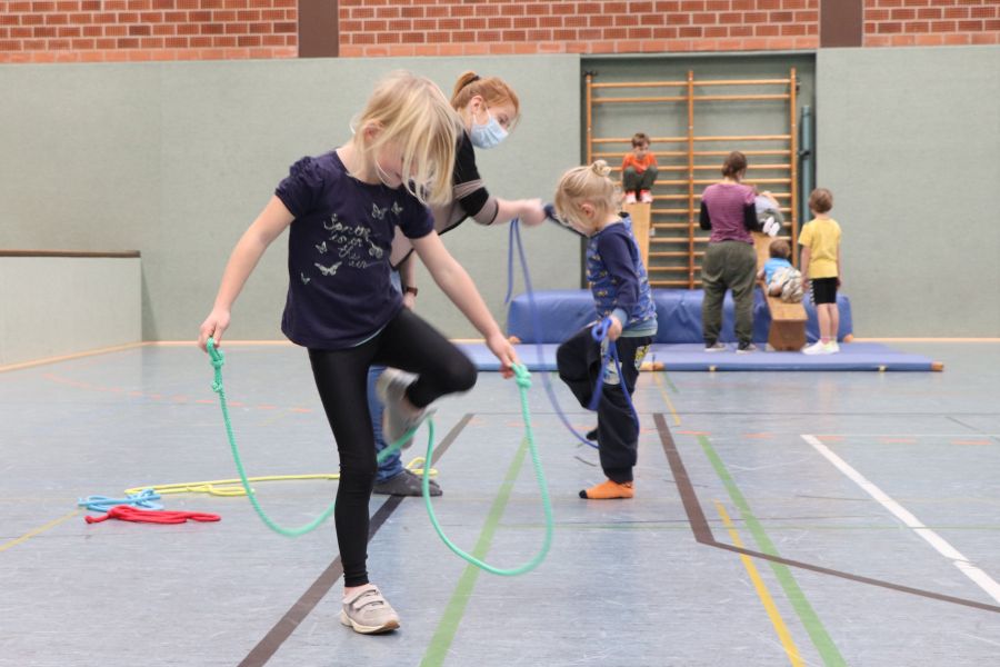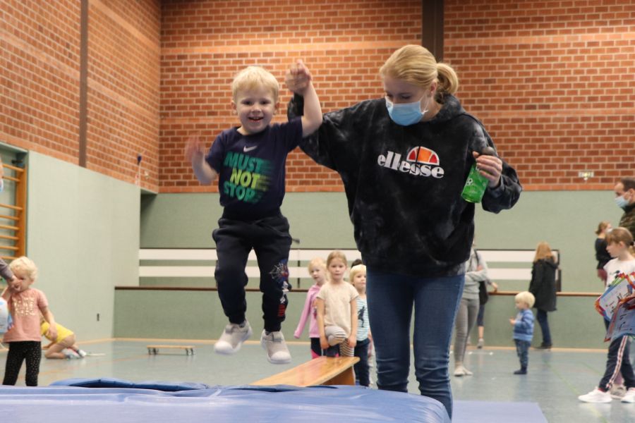 Unsere Übungsleiterinnen der Kinder-Turngruppen waren sofort bereit, wieder Übungen an verschiedenen Stationen auszuarbeiten. Einen Plan für die Umsetzung erstellte dann Alexandra, unsere FSJ’lerin, und Dank der Mithilfe einiger Eltern konnte schließlich ein reibungsloser Ablauf gewährleistet werden. Vielen Dank an dieser Stelle für die Unterstützung! Schließlich ist es nicht selbstverständlich, am Wochenende morgens um halb neun in der Sporthalle Geräte aufzubauen, während andere Familien noch gemütlich beim Frühstück sitzen.