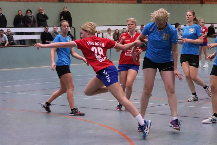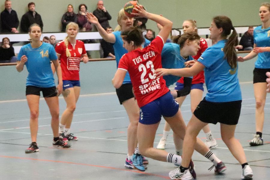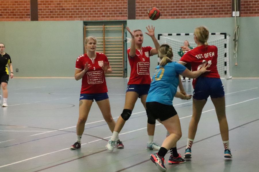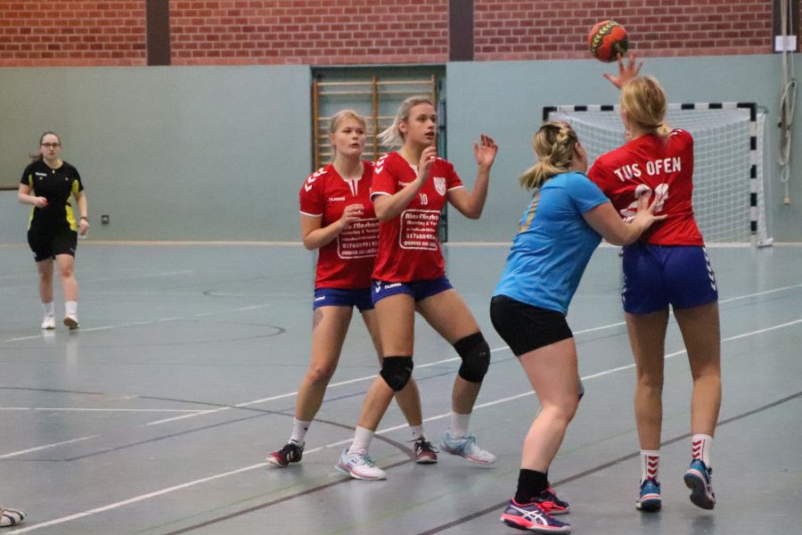 Den hohen Vorsprung nutzten die Mädels, um einiges auszuprobieren und dem Publikum ein schönes Spiel bieten zu können. Leider musste sich Anna Dreyer nach einer Unsportlichkeit während eines Tempogegenstoßes in der 48. Minute auf die Tribüne verabschieden. Davon ließ sich die Mannschaft jedoch nicht beeinflussen. Besonders die letzten 10 Minuten gehörte den Ofenerinnen, die Gäste erzielten in der Zeit kein Tor mehr. Ebenfalls erwähnenswert ist, dass jede Spielerin der Damenmannschaft des TuS Ofen mindestens ein Tor erzielte. Am Ende stand ein verdienter Stand von 35:17 auf der Uhr.