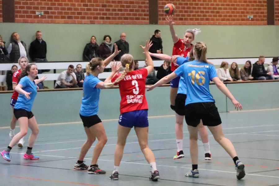 Am vergangenen Samstag gewannen die Damen des TuS Ofen deutlich gegen das aktuelle Tabellenschlusslicht, den OTB II. Bereits zu Beginn der Partie wurde die starke Leistung der letzten Spiele fortgesetzt und schon nach 15 Minuten stand es 12:2 für die Heimmannschaft.