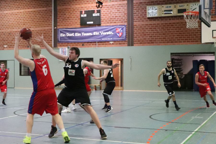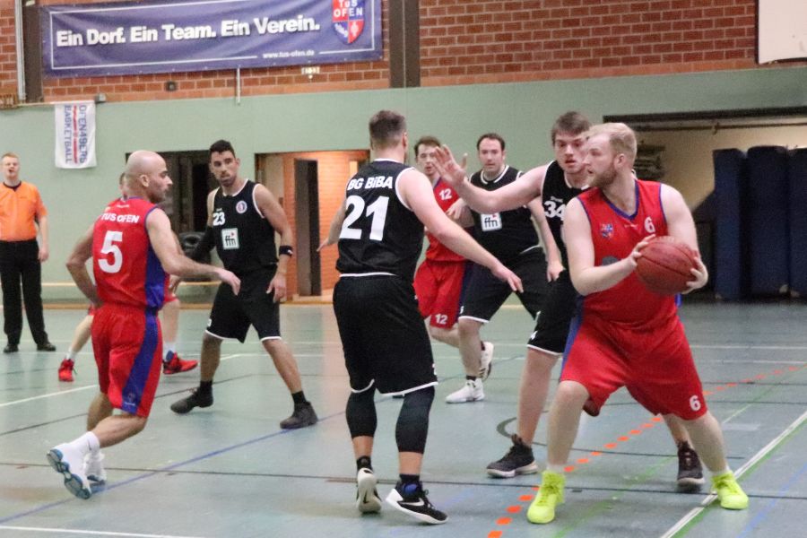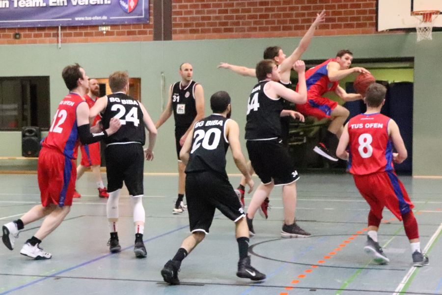 Die individuelle Klasse des Gegners machte aber einfach den Unterschied. Offene Distanzwürfe wurden von der BG BiBa treffsicher verwandelt und trotz des beherzten Einsatzes der Großen aus Ofen, allen voran Defensiv-Anker Jelto Swalve, war gegen Jan Fikiel unter dem Korb nicht mehr als Schadensbegrenzung drin.